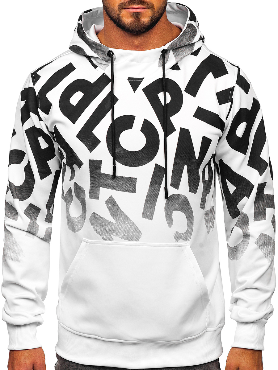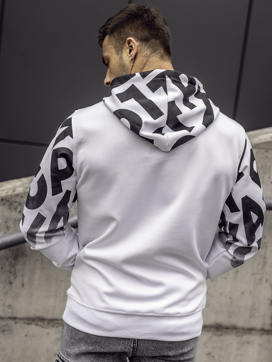 Mišljenja korisnika o Bijela dukserica muška s kapuljalčom klokan džepom i printom Bolf 8B992