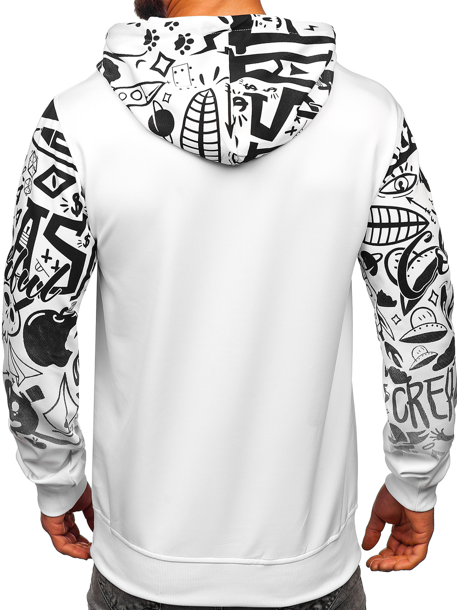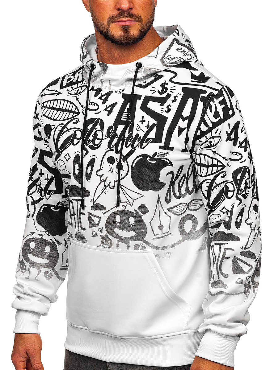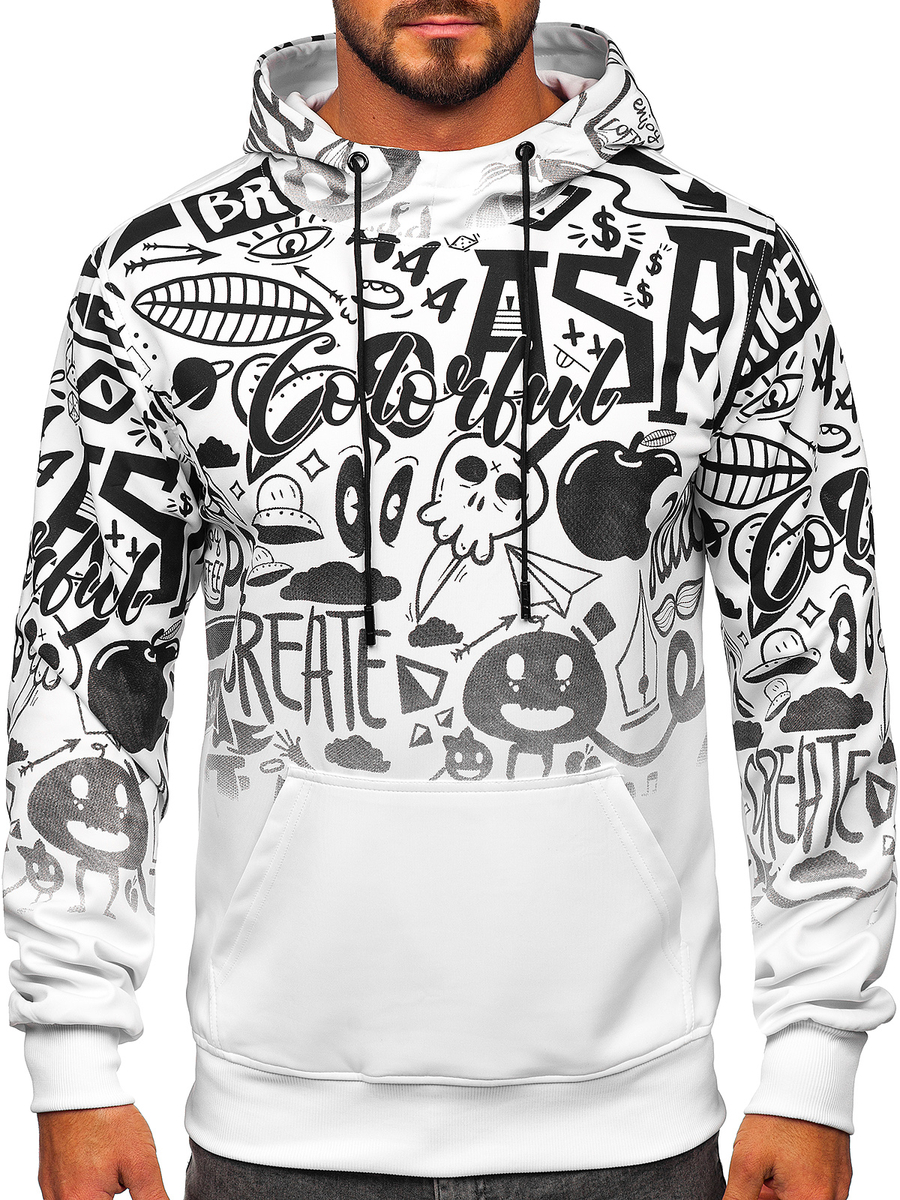 Mišljenja korisnika o Bijela dukserica muška s kapuljalčom klokan džepom i printom Bolf 8B995