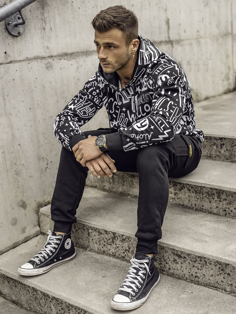 Muška trenirka Bolf 8B1150 u crnoj je savršena opcija za muškarce koji vole udobnost i sportski stil. Majica s kapuljačom navlači se preko glave i ima podesivu kapuljaču koja vas štiti od hladnoće i vjetra. Opušteniji kroj osigurava visoku udobnost pri nošenju i ne sputava kretanje. Ima prostrani klokan džep s prednje strane u koji možete spremiti svoje ključeve ili telefon. Sweatshirt se svojim zanimljivim, modernim dizajnom uklapa kako u sportski tako i u svakodnevni muški stajling. Izgledat će sjajno uz trenirkui tenisice.