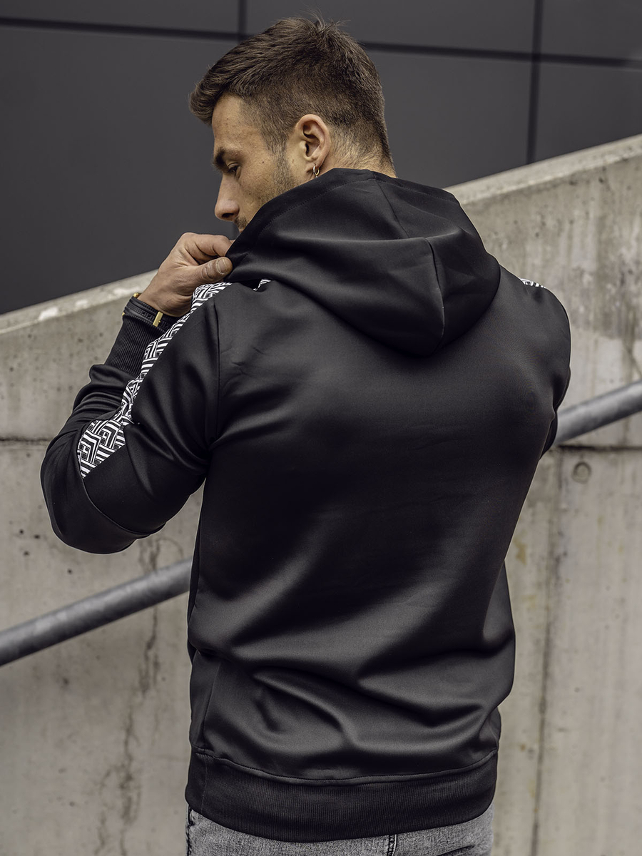 Mišljenja korisnika o Crna dukserica muška s kapuljačom, klokan džepom s printom Bolf 8B996