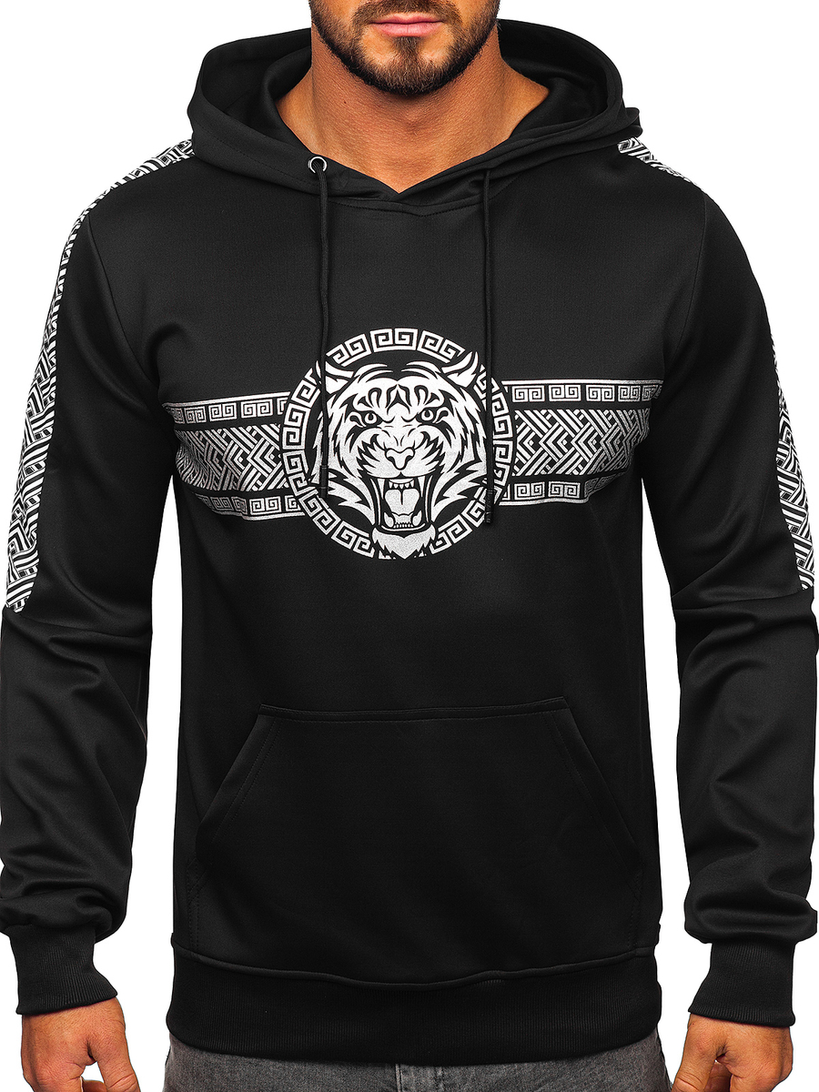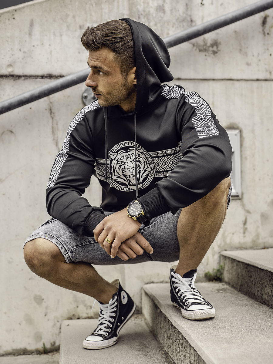 Volite zanimljive uzorke i tamne boje? Muška crna dukserica Bolf 8B996 bit će savršen izbor za vas. Ističe se velikim, pažljivo izrađenim printom s motivom tigra. Dobro ide uz joggerei sportski prsluk. Podesiva kapuljača pruža zaštitu od hladnoće i kiše. A ukrasi u obliku rubova omogućuju materijalu da bolje pristaje uz tijelo. Osim toga, trenirka ima klokanski džep i izrađena je od mekanog materijala koji pruža veliku udobnost pri nošenju.