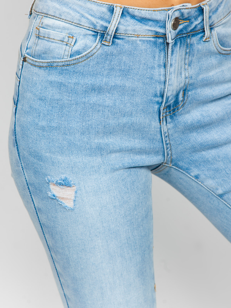 Ženske plave push up traperice Bolf S9859 je moderan i praktičan izbor za žene koje žele izgledati moderno. Zahvaljujući dobrom kroju i visokokvalitetnog materijala, ove hlače jamče potpunu slobodu kretanja i maksimalnu udobnost. Zakopčavaju se patentnim zatvaračem, sa suženim nogama stanjuju noge. Ogrebotine i sjenčanja na cijeloj površini hlača daju im moderan karakter. Traperice će savršeno izgledati uz majicu ili duksericu i sportskom obućom.