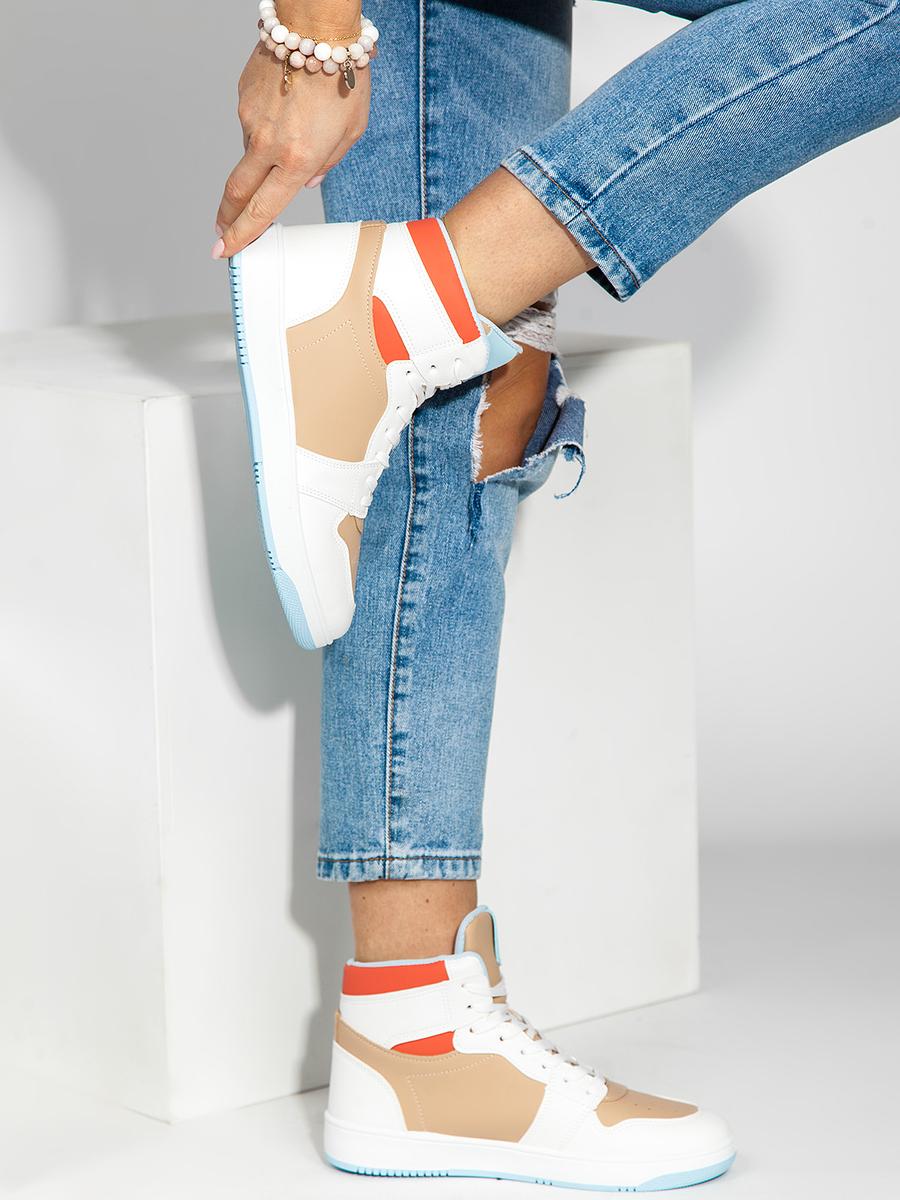 Bež ženske tenisice B527 su iznimno moderan i udoban izbor za svaku ženu. Njihov minimalistički dizajn i neutralna boja pristaju uz mnoge različite stilove, od casual do elegantnijih. Isplati se je kombinirati uz traperice i sportsku jaknu. Izrađene su od visokokvalitetnih materijala koji osiguravaju izdržljivost i udobnost pri nošenju. Gornjište koje seže iznad gležnja, povećava stabilnost i udobnost pri hodu, a vezanje omogućuje savršeno pristajanje uz oblik stopala. Cipele su iznutra obložene mekim i ležernim materijalom koji sprječava trljanje i pruža udobnost tijekom cijelog dana nošenja.