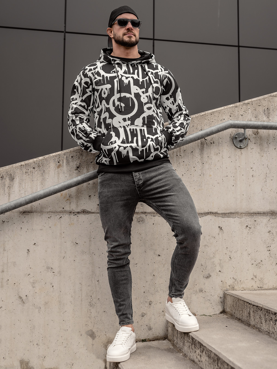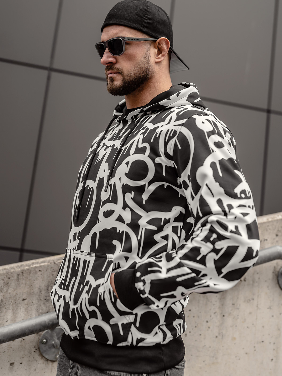 Mišljenja korisnika o Crno-bijela muška majica s kapuljačom s printom Denley 8B1152A