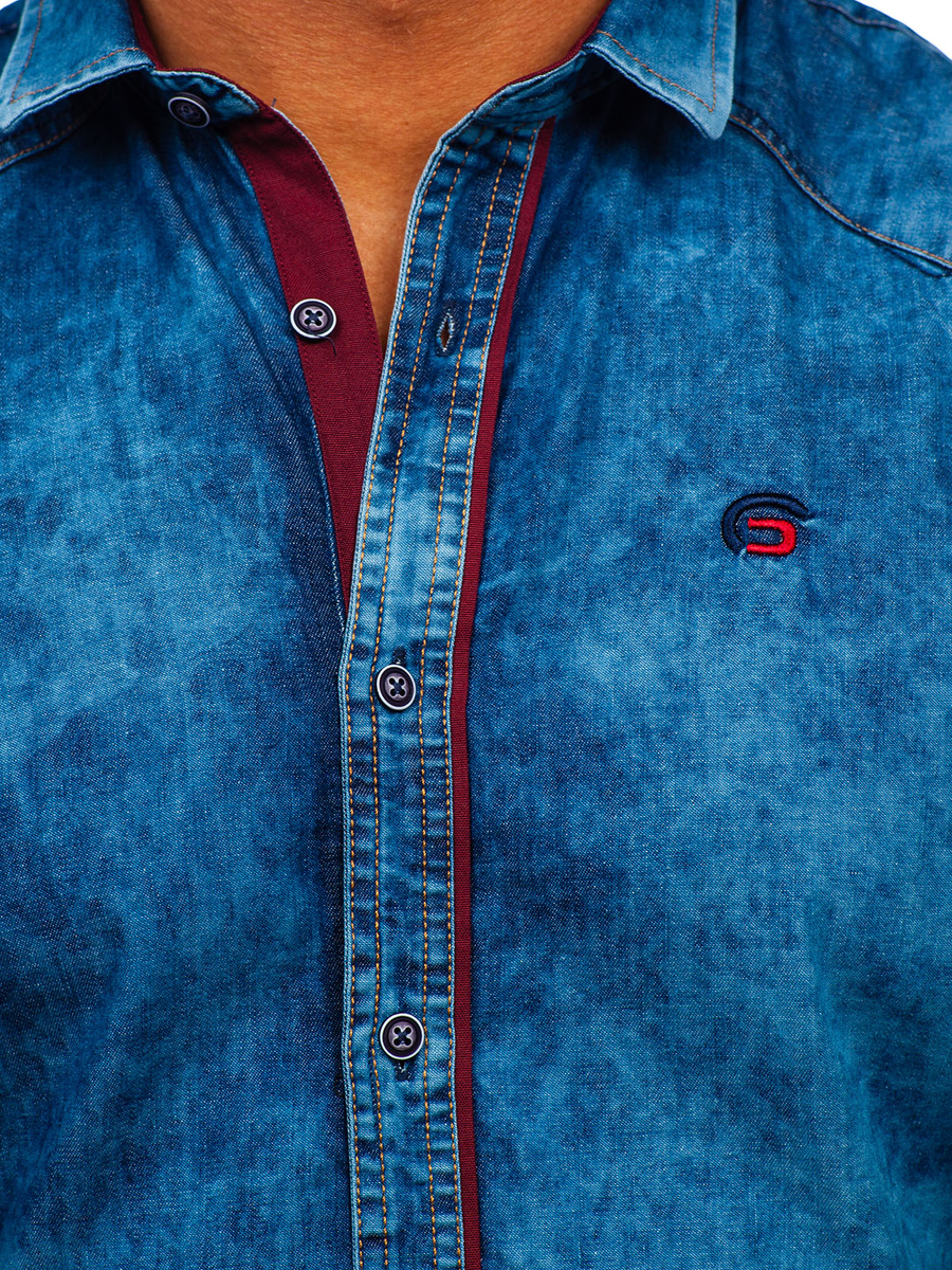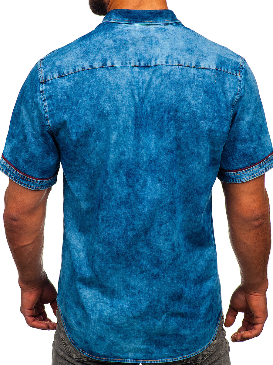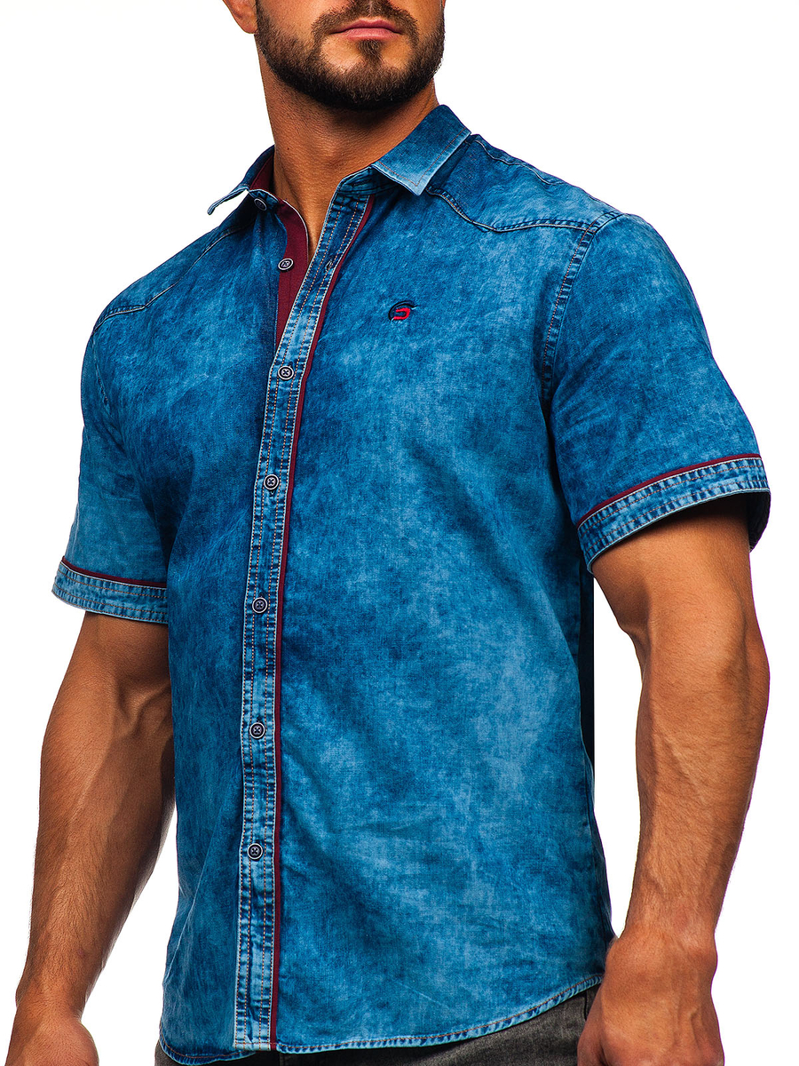Mišljenja korisnika o Plava muška jeans košulja s kratkim rukavima Denley 19640
