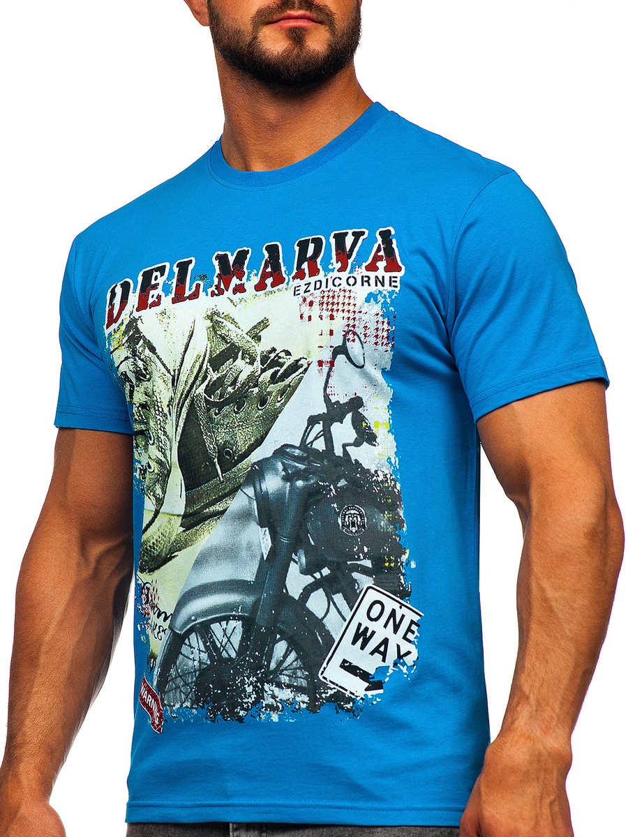 Mišljenja korisnika o Svijetloplavi pamučni muški T-shirt s printom Denley 143008