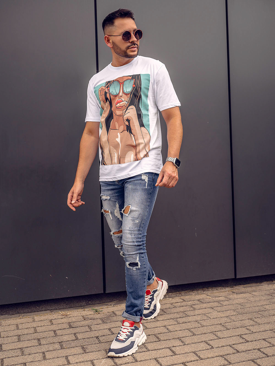 Mišljenja korisnika o Bijeli pamučni muški t-shirt s printom Bolf 143019A
