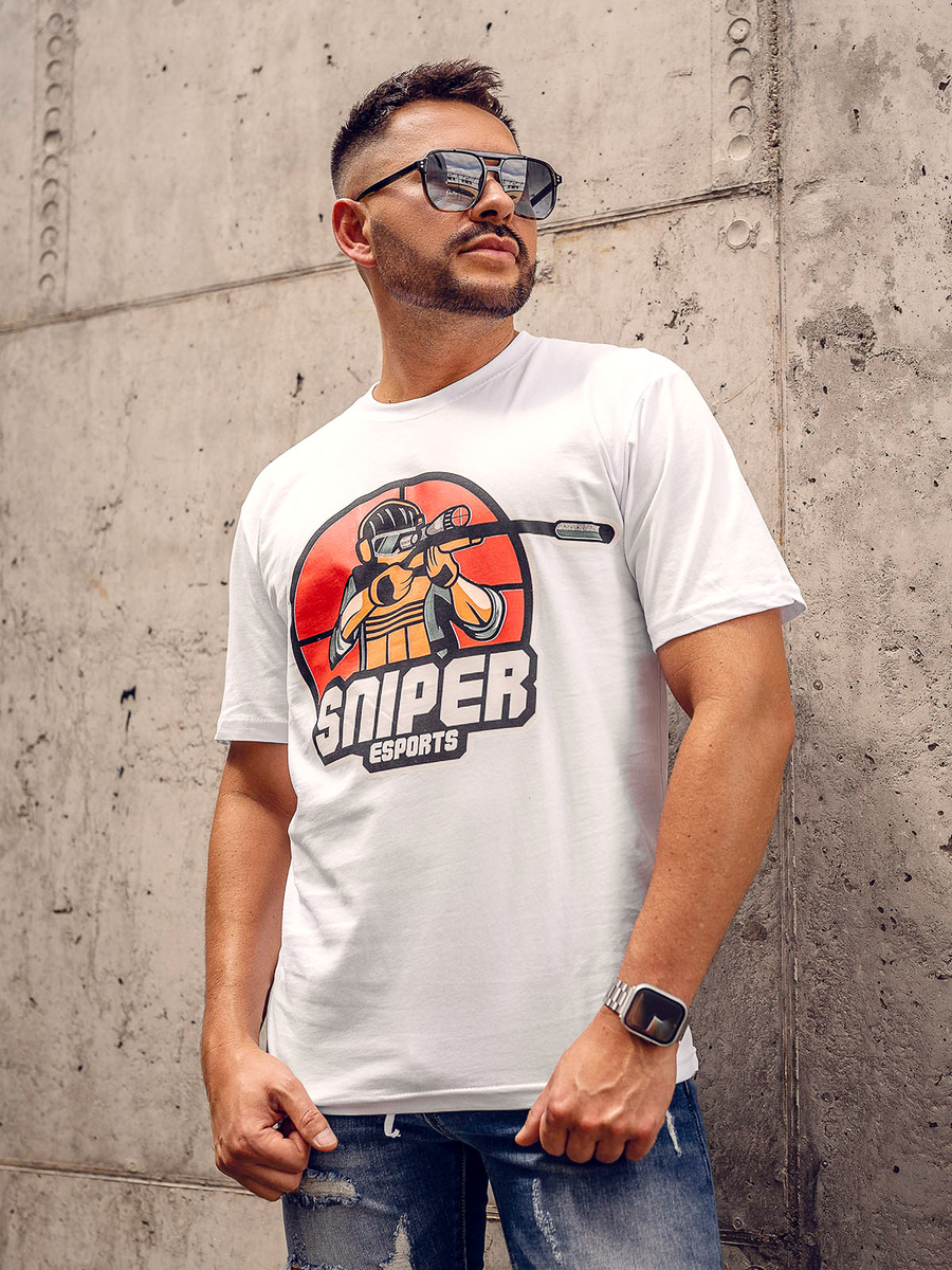 Mišljenja korisnika o Bijeli pamučni muški t-shirt s printom Bolf 143022A