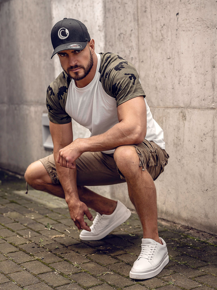 Bijela camo majica Bolf 8T82A dostupna je u mnogim modernim kombinacijama boja. Savršeno se prilagođava muškoj figuri. Ima okrugli izrez. Tanka majica kratkih rukava bit će izvrsna osnova za stvaranje mnogih zanimljivih stilizacija. Majica je savršena za svakodnevno nošenje, proizvod je koji morate imati! Kontrastne kombinacije materijala daju mu super moderan i osebujan izgled. Odlično će pristajati uz traperice, cargo hlače ili joggerice.