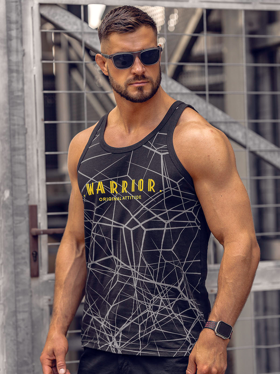 Crna bokserica bez rukava s printom Bolf 14845A odličan je izbor za muškarce koji cijene dobar i moderan izgled. Ova majica ti neće samo osigurati iznimnu udobnost tijekom toplih dana, već će te i izdvojiti iz mase zahvaljujući jedinstvenom printu. Izrađena od visokokvalitetnih materijala koji jamče izdržljivost, elastičnost i prozračnost. Savršena je za svakodnevno nošenje, za teretanu, tijekom fizičkih aktivnosti ili jednostavno kao casual dio garderobe. Odlično se slaže s trapericama, šorcevima ili sportskim hlačama, stvarajući moderan i opušten izgled.