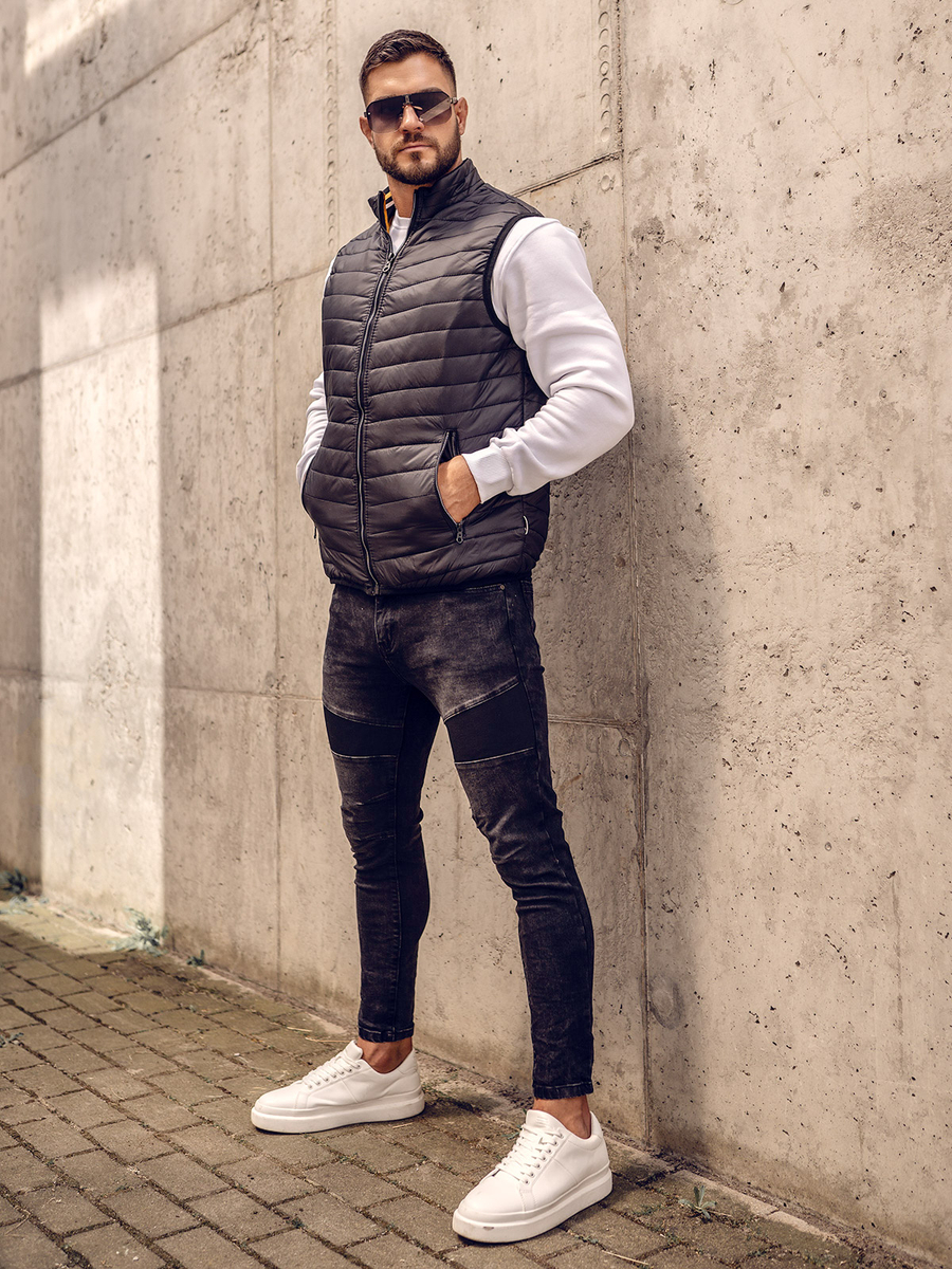 Muški crni prošiveni prsluk Bolf 7103A bit će savršen za jesenske i proljetne stilizacije. Prsluk se kopča patentnim zatvaračem i ima ovratnik. Ima dva vanjska džepa s patentnim zatvaračima i dva unutarnja džepa bez kopča, u koje možete sigurno pohraniti najpotrebnije stvari. Donji dio i rupe za ruke završeni su elastičnim obrubom. Prsluk je dostupan u nekoliko modernih boja i sportskog je, jednostavnog kroja. Savršeno za svakodnevne izlete u grad, sastanke s prijateljima ili večernju šetnju. U kombinaciji s longsleeve majicom i jogger hlačama dobivate outfit stilizaciju. Također odlično funkcionira sa duksericom i trapericama.