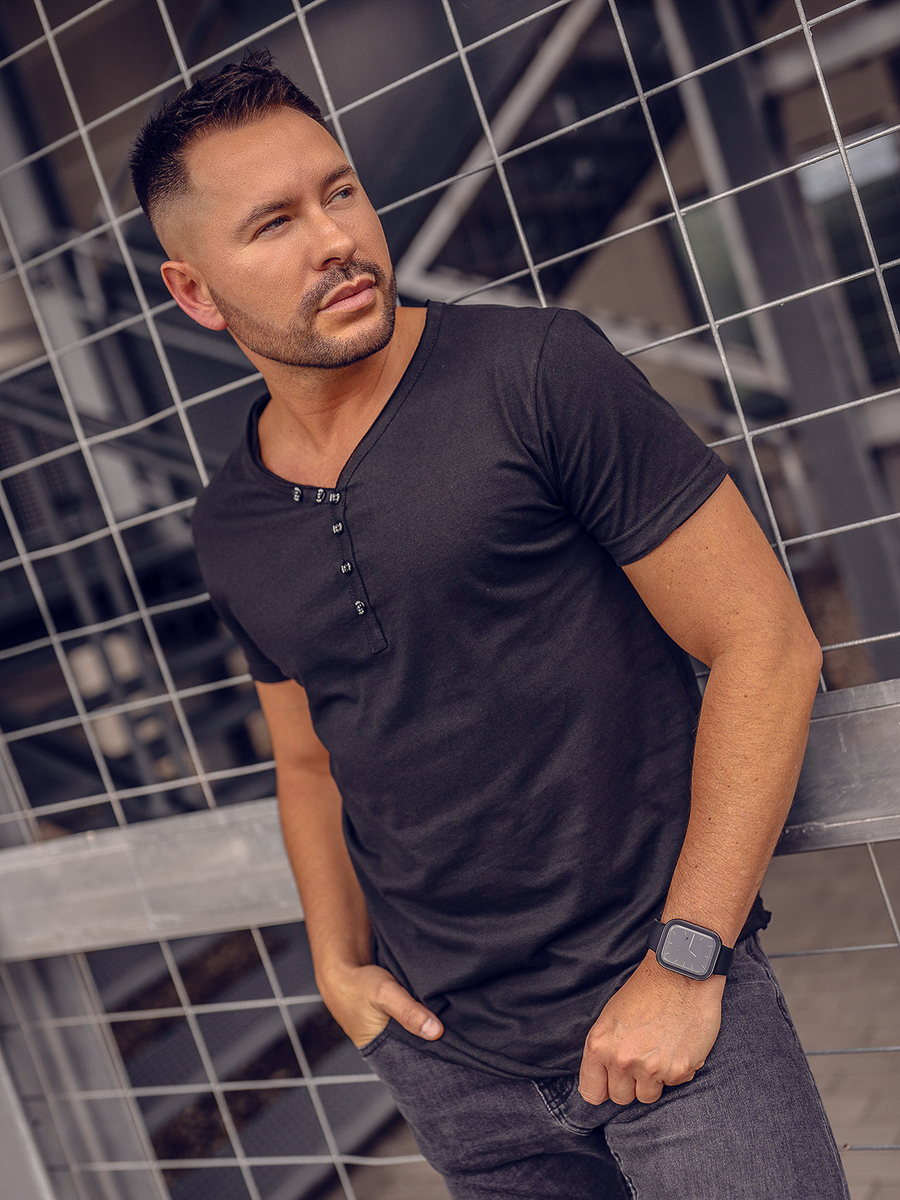 Mišljenja korisnika o Crna pamučna muška majica V-izreza bez printa Bolf 4049A