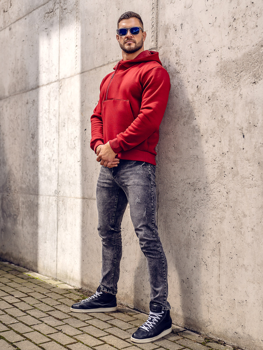Bordo muška dukserica s kapuljačom Bolf 02A je naš prijedlog za hladnije dane. Ima kapuljaču i bezvremenski klokan džep. Izrađena je od vrlo ugodnog materijala na dodir. Sastoji se od 70% pamuka i 30% poliestera. Dolazi u nekoliko zanimljivih boja dakle možete ju uskladiti s bilo kojim stajlingom Donji dio i rukavi trenirke završeni su širokom manžetnom koja pruža toplinu u hladnijim danima.Toliko će vam se svidjeti da će vas pratiti u svako doba godine. Bit će savršena za šetnju ili izlet izvan grada s prijateljima. Uz naše trenirke, ova će trenirka savršeno odgovarati aktivnim osobama. Za svakodnevnu upotrebu, trenirka će izgledati sjajno uz traperice i kožnu jaknu.