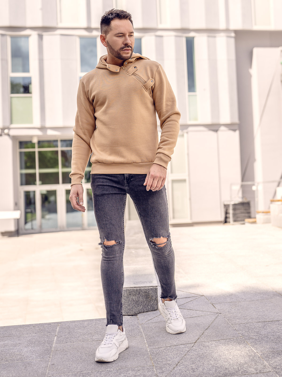 Muška smeđa dukserica s kapuljačom Bolf 06A univerzalni je proizvod koji će izgledati sjajno u ljetnim i zimskim stilizacijama. Dostupan je u mnogim bojama, što daje širok raspon mogućnosti u kreiranju svakodnevnih stilizacija. Dukserica u modernoj boji osnova je dobrog našeg stila. Ima kapuljaču koja se kopča s dvije kopče, što pruža zaštitu od vjetra i hladnoće. Donji dio i rukavi su završeni rubom. Ova vrsta proizvoda je must have za ljubitelje sportskog stila. Pruža udobnost tijekom hodanja, trčanja ili treninga. Dukserica je izrađena od 70% pamuka i 30% poliestera, što je čini iznimno udobnom i ugodnom na dodir. Savršeno će izgledati sa sportskim hlačama stvarajući sportski, opušten outfit. Takođe savršeno će stajati sa trapericama i jogger hlačama. Možete ga nositi sa što god želite: longsleeve majice, dukserice, ili T-shirt!