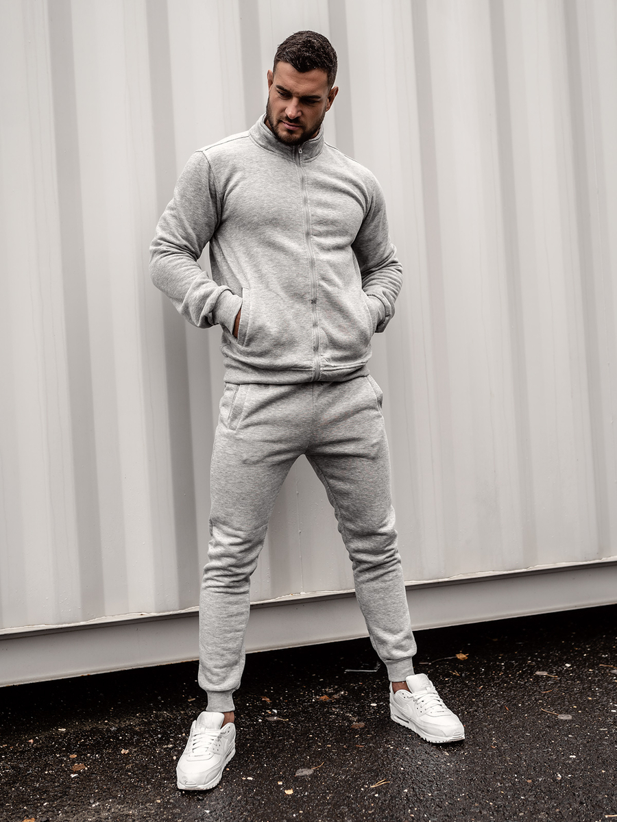 Siva muška trenirka Bolf 10385A je sportski komplet trenirke koji uključuje trenirku i trenirku. Majica se kopča patentnim zatvaračem i ima vanjske džepove. Hlače su podesive u struku s jakim rubom i uzicom te imaju dva vanjska džepa. Jednostavan, uklopljen kroj daje im sportski izgled. Proizvod je izrađen od nježne tkanine ugodne na dodir. Komplet trenirki može biti univerzalna baza za izradu svakodnevnih ili sportskih stilizacija. I trenirka i hlače mogu se kombinirati s drugim odjevnim predmetima, čime se dobivaju brojne mogućnosti za kreiranje svakodnevne stilizacije. Komplet će savršeno odgovarati majici uz laganu prijelaznu jaknu ili sportsku jaknu.
