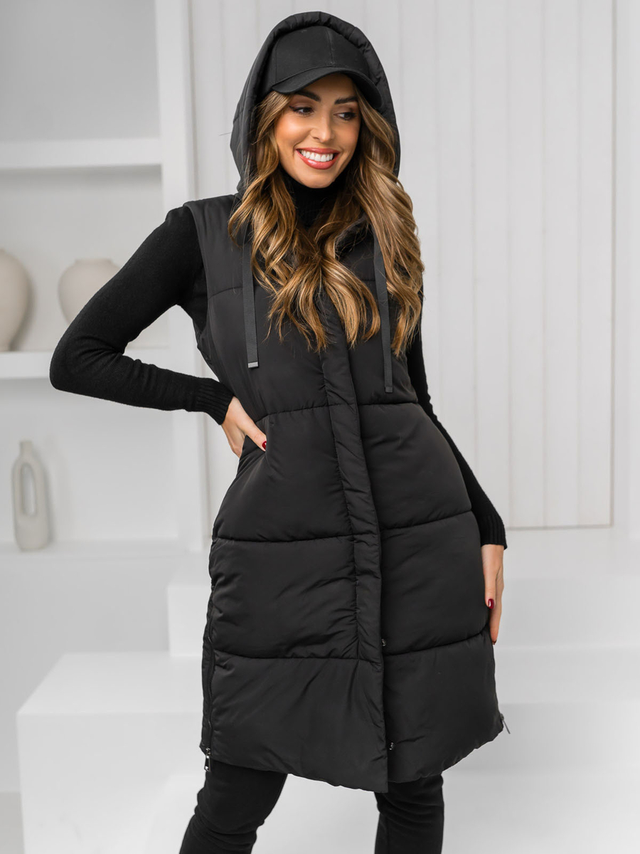 Mišljenja korisnika o Crni dugi pikirani prsluk za žene s kapuljačom Bolf 16M9093