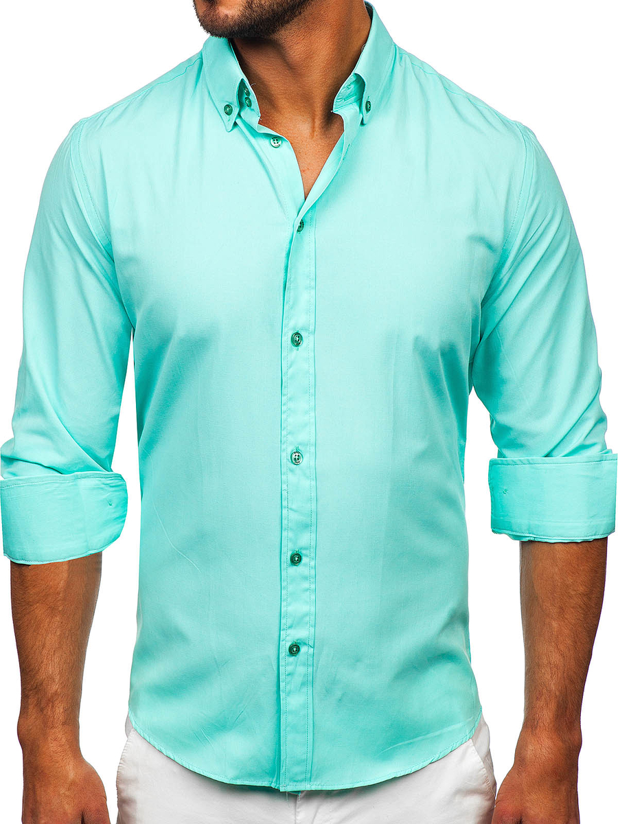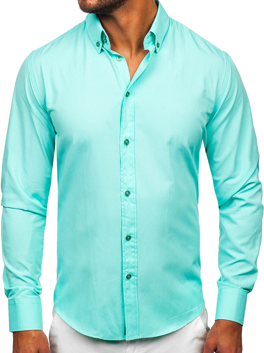 Svijetlo tirkizne, elegantne muške košulje Bolf uklapaju se u svaki stajling - svečani i svakodnevni. Senzacionalno vitkijte figuru, dodaju stil stilizacijama. Zelene slim fit košulje su elegantne, ali također imaju tipične casual aplikacije, npr. ovratnik s gumbima.
