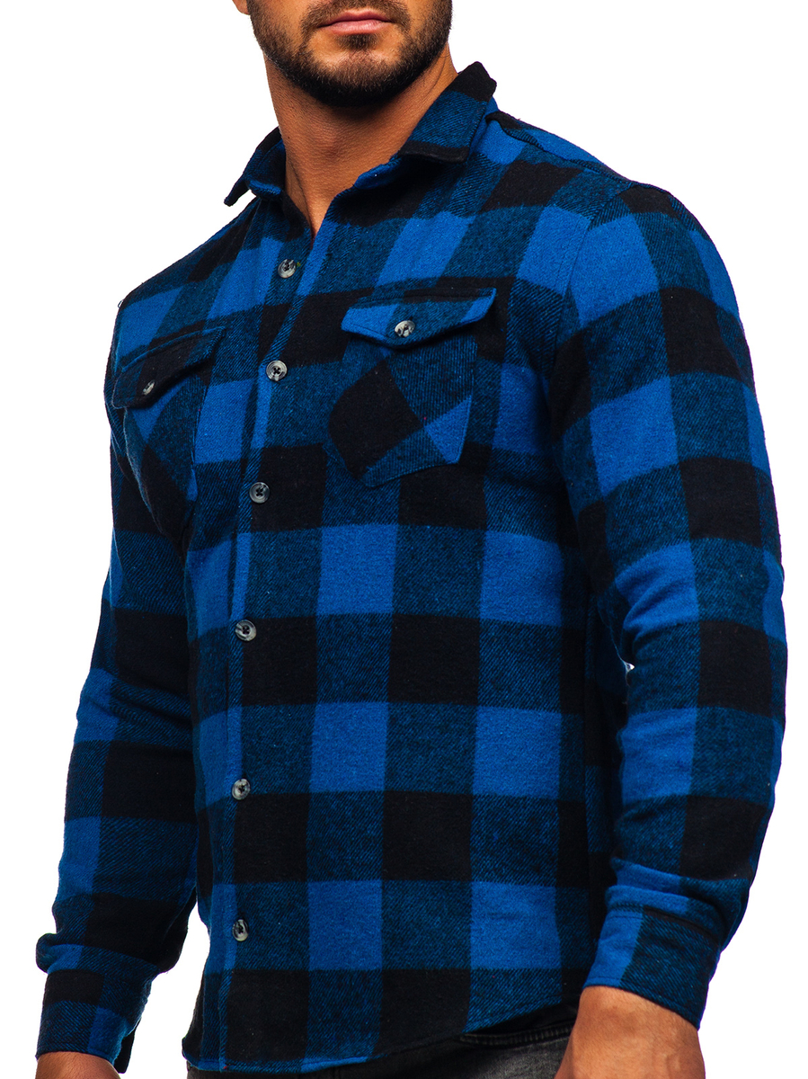 Muška tamnoplava flanelska košulja dugih rukava Bolf 20723 proizvod je na kopčanje s hai ovratnikom. Košulja ima dva elegantna džepa zakopčana na gumb. Donji dio košulje je zaobljen. Proizvod ima manšete koje se također zakopčavaju gumbom.