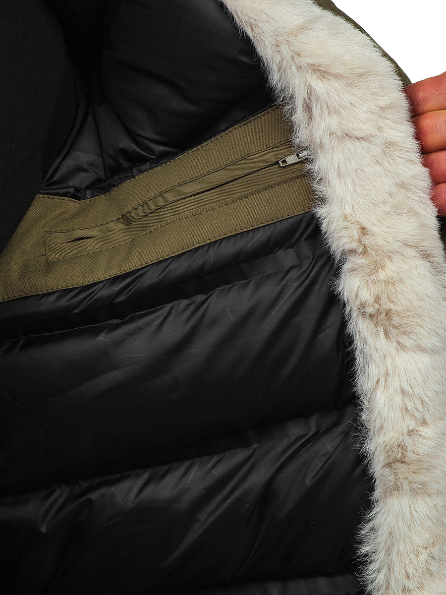 - neodvojiva, podesiva kapuljača, podstavljena krznom iznutra