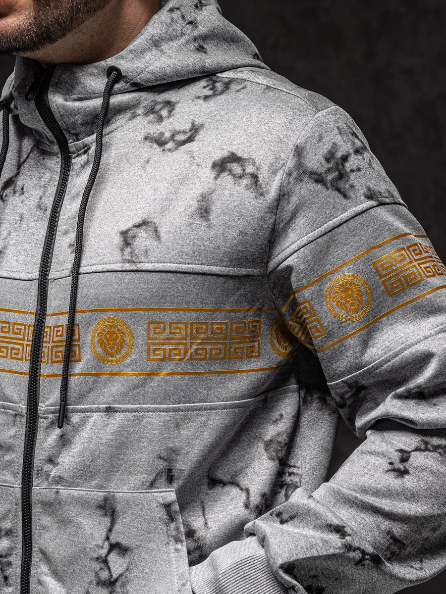 Siva muška dukserica sa patentnim zatvaračem sa kapuljačom Bolf 27B8125A1 izvanvremenski je klasik u svakodnevnom stilu. Sweatshirt klasičnog kroja, s podesivom kapuljačom, savršen za ljubitelje sportskog stila. Dizajnerski print daje jedinstven, moderan karakter. Donji dio i rukavi trenirke obrađeni su remenom koji pruža toplinu i zaštitu od vjetra u hladnijim danima. Majica ima dva bočna džepa bez kopčanja. Izrađena je od vrlo ugodnog materijala koji će osigurati udobnost i tijekom najzahtjevnijih treninga. Tražite sportsku odjeću? Kombinirajte trenirku s hlačama, majicom i vestom!