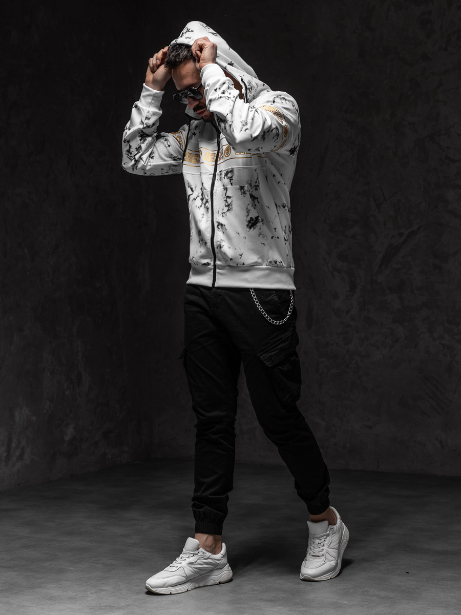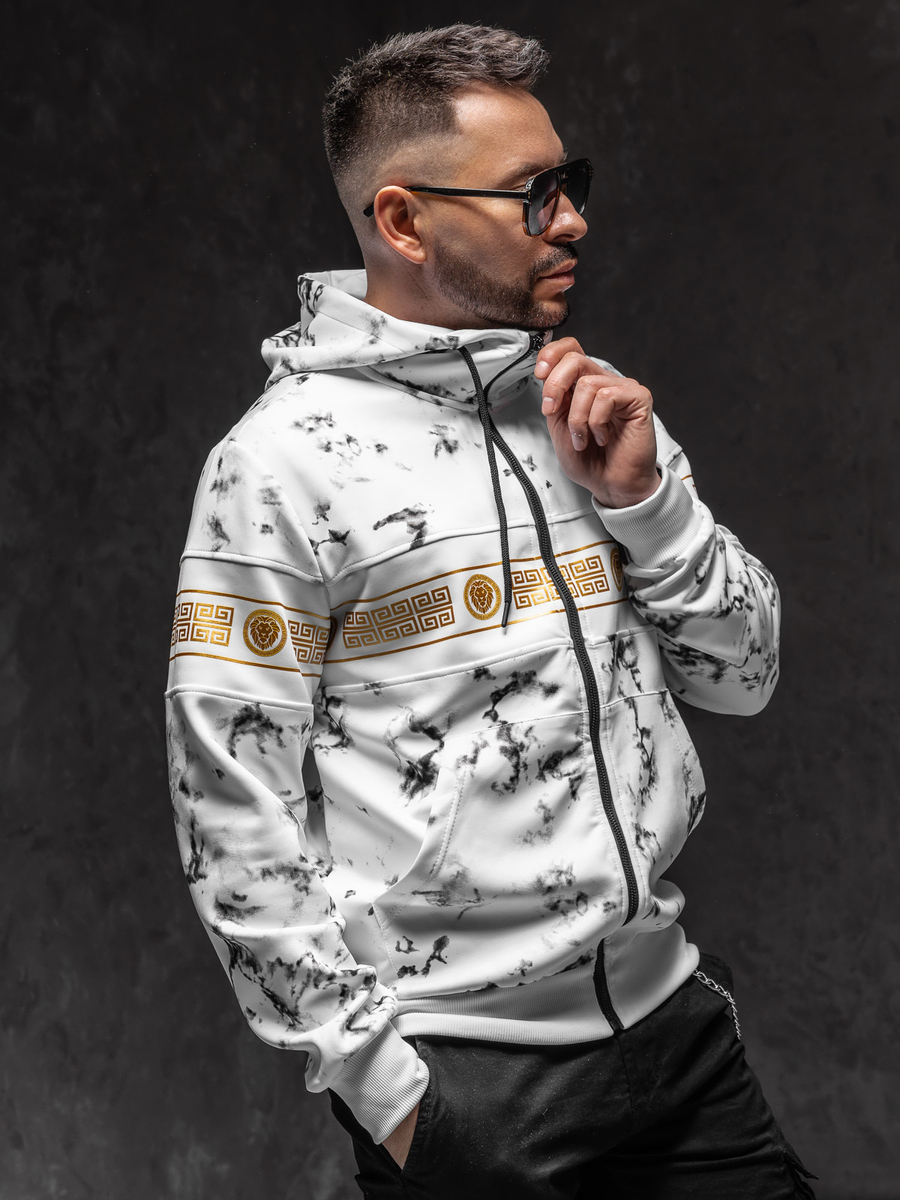Muška bijela majica s patentnim zatvaračem Bolf 27B8125 izvanvremenski je klasik u svakodnevnom stilu. Sweatshirt klasičnog kroja, s podesivom kapuljačom, savršen za ljubitelje sportskog stila. Dizajnerski print daje jedinstven, moderan karakter. Donji dio i rukavi trenirke obrađeni su remenom koji pruža toplinu i zaštitu od vjetra u hladnijim danima. Majica ima dva bočna džepa bez kopčanja. Izrađena je od vrlo ugodnog materijala koji će osigurati udobnost i tijekom najzahtjevnijih treninga. Tražite sportsku odjeću? Kombinirajte trenirku s hlačama, majicom i vestom!
