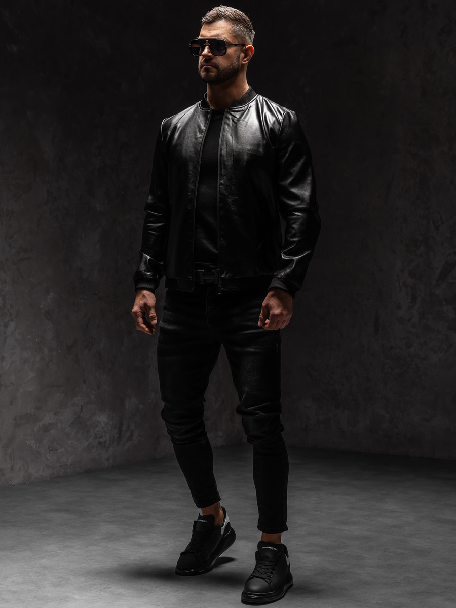 Muška crna kožna bomber jakna Bolf 6803A1 savršen je izbor za muškarce koji žele izraziti svoj individualni stil. Izrađena je od najkvalitetnijeg materijala zahvaljujući kojem je izdržliva i sigurno će Vama služiti više sezona. Klasičan kroj savršeno ističe figuru i daje eleganciju i šik. To je bezvremenski element muške garderobe koji pristaje kako uz casual tako i uz svečaniji stil. Možete je nositi kako svakodnevno uz traperice, tako i za svečanije prilike uz košulju i chino hlače.