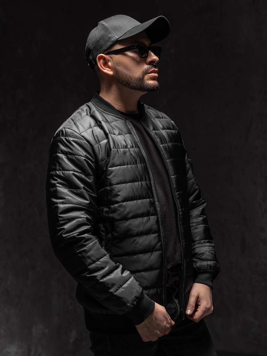 Muška crna prijelazna bomber jakna Bolf MY-02A1 prošivena je horizontalnim prugama. Kopča se patentnim zatvaračem. Jakna tipa bomber savršena je za sportski i svakodnevni styling, može se nositi kao street outfit. Ima praktičan stojeći ovratnik. Ima dva vanjska džepa koja se kopčaju patentnim zatvaračem i jedan dodatni džep na lijevom rukavu koji se također kopča patentnim zatvaračem. Rukavi, donji dio i ovratnik završeni su kontrastnim crnim manšetama. Jakna je, zbog svoje jednostavnosti i kvalitete izrade, bezvremenska i može se nositi mnogo sezona. Bomber jakna savršeno se uklapa u suvremene modne trendove, izrađen je od ugodne na dodir, lagane i tople tkanine. Jakna u sportskom stilu bit će savršena za hladnije dane, rano proljeće i jesen. Dostupna je u širokoj paleti boja što je čini lakom za kombiniranje s drugim komadima odjeće.