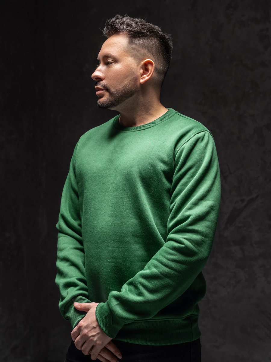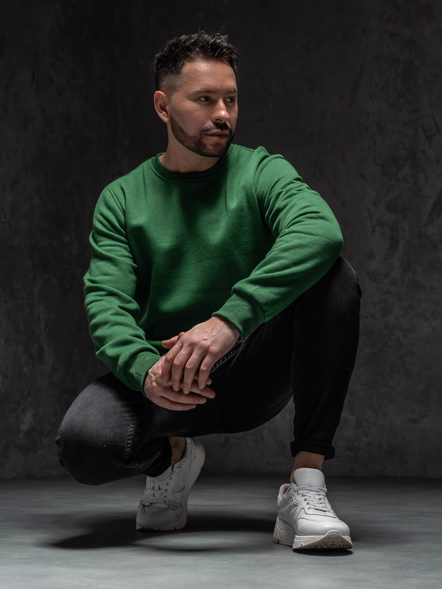 Zelene muške dukserice Bolf za ljubitelje minimalizma. Lijepo uklopljene, udobne, univerzalne. Dukserica bez kapuljače dobro stoji uz traperice ili, modernije, uz joggerice. Prigušena zelena boja savršena je za uravnotežene i ekstravagantne stilove.