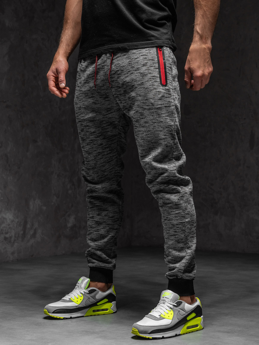 Muške grafitne sportske hlače marke Bolf s printom nepravilnog uzorka. Savršeno pristaju, imaju 2 džepa s patentnim zatvaračem i praktičan pojas te kontrastne umetke na džepovima. Muške grafitne hlače možete nositi uz razne stilizacije. Nosite ih uz majice kratkih rukava, dugih rukava ili uz trenirku.