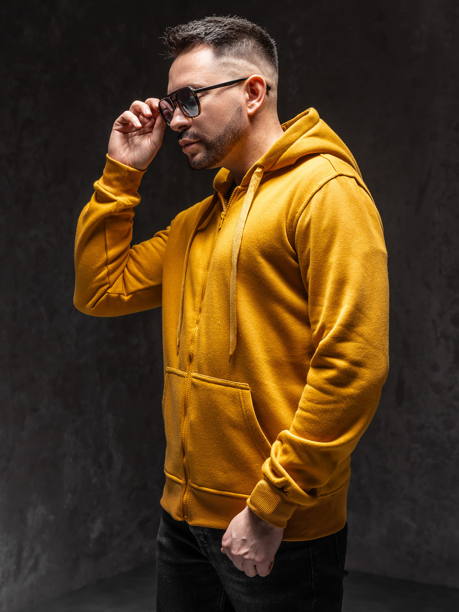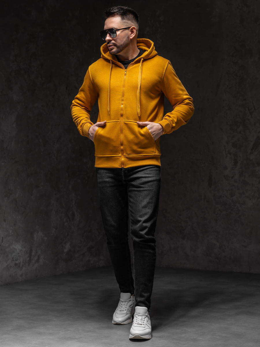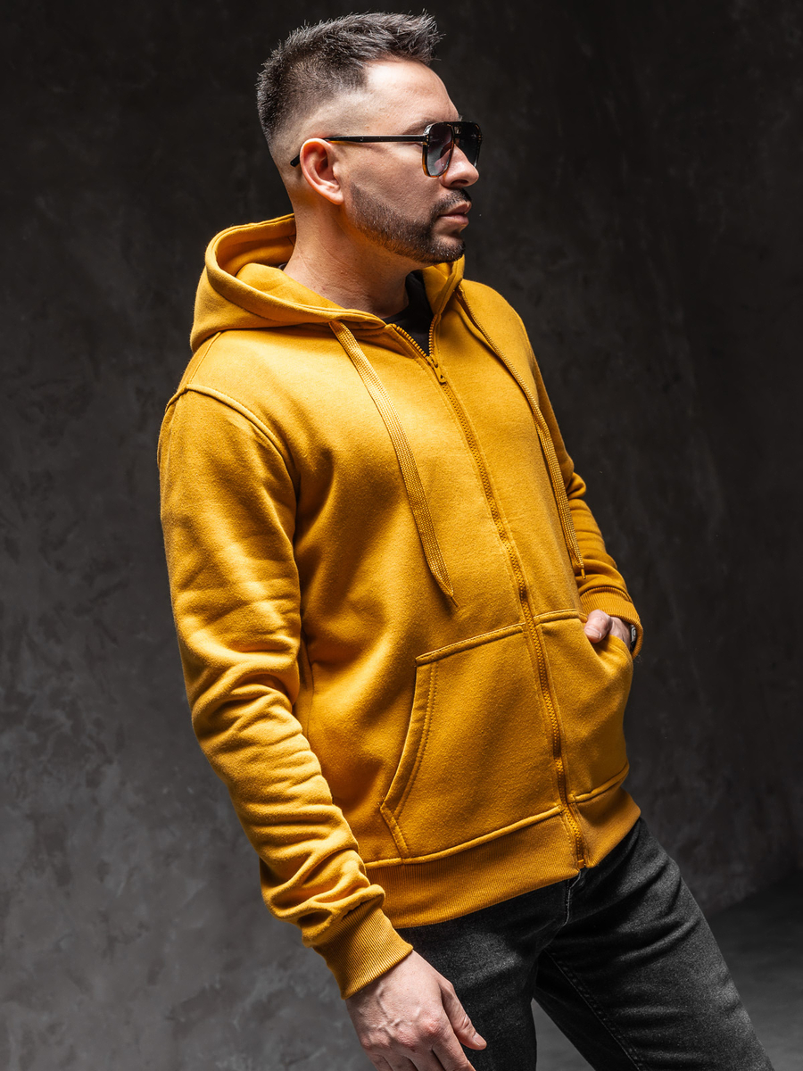 Muška camel dukserica s kapuljačom Bolf 2008A1 kopča se patentnim zatvaračem. Dukserica klasičnog kroja od mekane tkanine za trenirke ugodnog na dodir. Proizvod karakterizira mnoštvo izražajnih boja u kojima je dostupan. Ima jednobojnu podesivu kapuljaču i dva bočna džepa. Donji dio trenirke i rukavi završeni su jakim rubovima. Sweatshirt preporučamo prvenstveno ljubiteljima minimalizma i udobnosti u modi. Dobro je sašivena i udobna. Must have u modnoj muškoj garderobi. Jednostavan, klasičan kroj u zanimljivim bojama čini ovaj model dukserice savršenom kulminacijom mnogih svakodnevnih, uličnih i sportskih stilizacija. Glatki muški sweatshirt na otkopčavanje prijedlog je koji vrijedi imati u svom ormaru ne u jednoj, pa čak ni u višebojnoj varijanti. Od klasične crne, preko tamnoplave i crvene, do nešto ekstravagantnijih u bojama žute, narančaste ili ružičaste. Trenirka će funkcionirati u mnogim okolnostima u bilo koje doba godine.