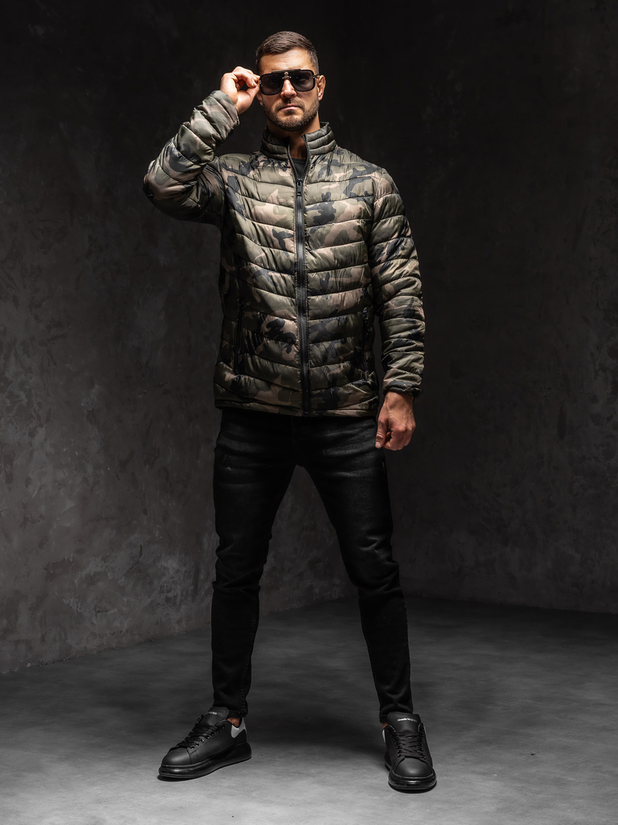 Zelena prošivena prijelazna muška camo jakna Bolf SM80A1 savršena je za jesensku i zimsku sezonu. Kopča se patentnim zatvaračem, ima stojeći ovratnik i rukave obrubljene elastičnim rubom. Jakna je nadopunjena iznimno modernim camo uzorkom, je prošivena na cijeloj površini i daje to jedinstven, moderan karakter. Izrađen je od 100% poliestera. Ima praktične džepove: dva vanjska sa zipom i dva unutarnja bez pričvršćivanja. Zahvaljujući svojoj svestranosti, proizvod se može kombinirati s mnogim stilizacijama. Savršeno za šetnju, sastanak s prijateljima ili izlet u grad. Ova jakna stvara savršeno usklađenu stilizaciju sa chino hlačama i longsleev majicom.