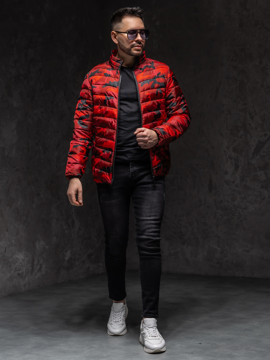 Muška sportska prošivena prijelazna camo-crvena jakna Bolf SM32A1 je apsolutni hit među jaknama preporučenim za prijelazno doba godine. Prošivena je vodoravnim prugama po cijeloj površini i kopča se patentnim zatvaračem. Nema kapuljače. Prijelazna sportska jakna dobro će pristajati u sportskim i svakodnevnim stilovima, ali i street outfitima. Ima otisnuti camo uzorak, koji je jako moderan u zadnjim sezonama. Ima praktičan stojeći ovratnik, koji će dodatno štititi od prodorne hladnoće i vjetra. Dva vanjska džepa s patentnim zatvaračima i dva unutarnja džepova. Rukavi i donji dio jakne obrađeni su elastičnim obrubom, zahvaljujući kojem bolje pristaje. Jakna se savršeno uklapa u suvremene modne trendove. Izrađena je od lagane, tople, kvalitetne tkanine koja će vas zaštititi od hladnoće i u najhladnijim danima.
