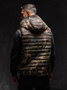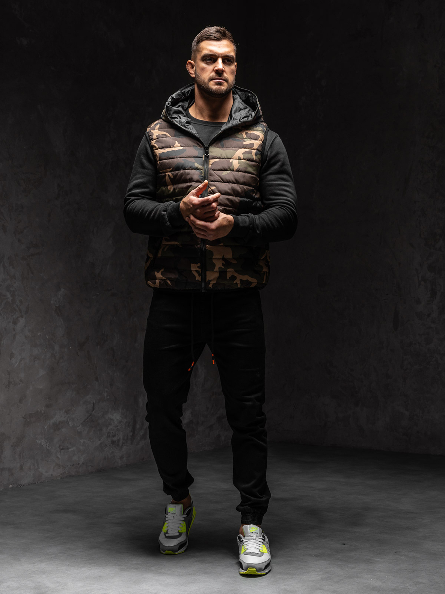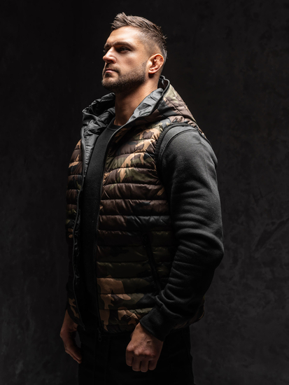 Kaki prošiveni muški prsluk s kapuljačom Bolf 7106A1 savršen je za kreiranje sportskog i urbanog stila. Ovaj prsluk klasičnog kroja bit će izvrsna alternativa jakni u jesenskoj sezoni, pružajući zaštitu od hladnoće i vjetra. Moderan camo motiv dodaje mu karakter. Zakopčava se patentnim zatvaračem i ima kapuljaču. Dva vanjska džepa s patentnim zatvaračima daju praktičan karakter. Također ima dva unutarnja džepa bez kopčanja. Donji dio je završen elastičnim porubom. Izrađena je od 100% poliestera. Prsluk se može koristiti kao osnova za mnoge moderne stilove, uspješno će zamijeniti prijelaznu jaknu. Izgledat će sjajno u kombinaciji sa trenirkama stvarajući sportski, opušteni outfit. Savršeno pristaje uz traperice i joggerice .