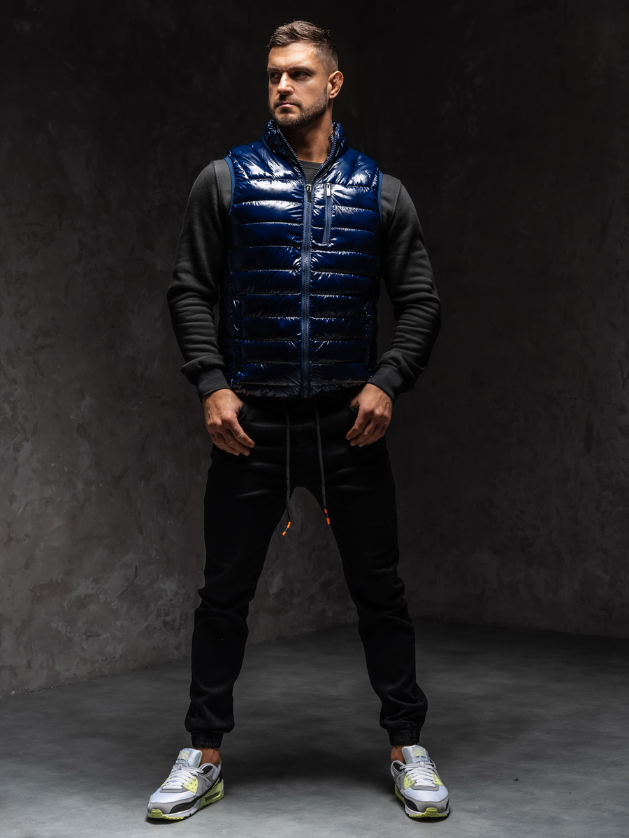 Mornarsko plavi prošiveni muški prsluk Bolf R0109AA1 savršen je za kreiranje sportskog i urbanog stila. Ovaj prsluk klasičnog kroja bit će izvrsna alternativa jakni u jesenskoj sezoni, pružajući zaštitu od hladnoće i vjetra. Zakopčava se patentnim zatvaračem i ima stojeći ovratnik. Dva vanjska džepa s patentnim zatvaračima daju joj praktičan karakter. Donji dio i rupe za ruke završeni su elastičnim obrubom. Prsluk je izrađen od 100% najlona. Prsluk se može koristiti kao osnova za mnoge moderne stilove, uspješno će zamijeniti prijelaznu jaknu. Izgledat će sjajno u kombinaciji sa trenirkama stvarajući sportski, opušteni outfit. Također će savršeno pristajati uz traperice i joggerice. Možete ga nositi uz što god želite: dugi rukav, trenirku ili majicu!