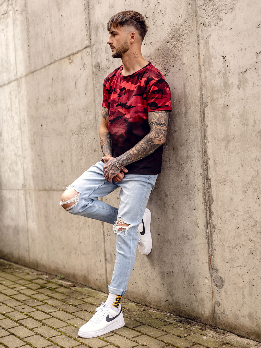 Crvena muška camo majica s printom Bolf S808A1 dizajnirana je za muškarce koji cijene hrabrost i originalnost u svom stilu. Majica kratkih rukava ima moderan camo uzorak kao i praktičan okrugli izrez. Majica je stilizirana kao ombre. Sastoji se od 65% pamuka i 35% poliestera, što majicu čini rastezljivom i savršeno pristaje uz figuru. Rukavi i donji dio su obrubljeni koncem koji savršeno odgovara bojama majice. <Br0 />Majica kratkih rukava savršena je za svakodnevno nošenje, moderan izgled i hrabar motiv će vas izdvojiti od ostalih muškaraca. Moderni ombre motiv daje košulji zanimljiv karakter. Proizvod je savršen za izlete u grad i trčanje. Proizvod je udoban i širok, poslužit će u mnogim prilikama. Karakteristične boje će upadati u oči. Vojni stil će vam dati originalnost i jedinstvenost. Majica je savršena za svakodnevne prilike, poput izlaska u grad, šetnje ili jogginga gradom ili parkom. Fleksibilnost materijala osigurat će udobnost tijekom trčanja ili vježbanja. Majica je dostupna u nekoliko varijanti boja. Boje majica možete slobodno odabrati prema svom stajlingu: pastelnije ili prigušenije. Majica bi trebala biti u svakom muškom ormaru, originalna je i dodaje karakter. Savršeno se može kombinirati uz traperice ili joggerice . Također se savršeno slažu s cargo hlačama što dodaje potpuno vojni karakter. Također savršeno pristaje uz trenirke , u opuštenijim stilizacijama. Širok izbor varijanti boja i veličina čini majicu must have za svakog muškarca koji se ne boji eksperimentiranja s modom i odvažnih stilizacija. Odličan omjer cijene i kvalitete čini majicu izvrsnim rođendanskim ili božićnim poklonom. Ovaj proizvod će vašoj garderobi dodati boju i jedinstvenost.