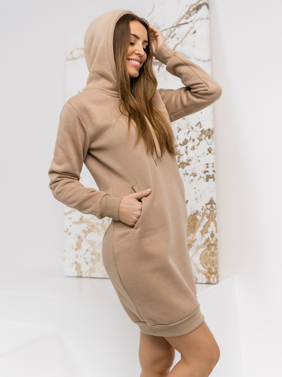 Bež duga ženska majica s kapuljačom Bolf YS10005A1 je proizvod namijenjen ženama koje cijene udobnost i eleganciju. Dugačka majica s kapuljačom nezaobilazan je dio trenutne ženske mode. Udobna je, elegantna, topla i univerzalna. Proizvod se stavlja preko glave, što omogućuje jednostavno skidanje ili stavljanje. Trenirka ima dva duboka i praktična bočna džepa u koje možete pohraniti razne sitnice. Donji dio i rukavi trenirke su završeni rupama, a trenirka savršeno pristaje uz figuru. Dostupan je u nekoliko boja i može se uskladiti s mnogim stilovima i odjevnim kombinacijama. Proizvod također ima široku kapuljaču koja pruža odličnu zaštitu od kiše i hladnoće. Kapuljača je podesiva uzicama. Majica je oversize.