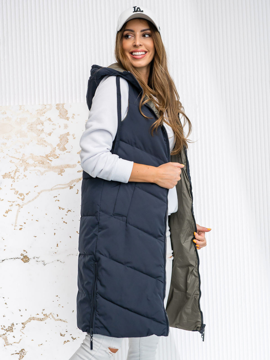 Mišljenja korisnika o Tamnoplavi dugi prošiveni prsluk ženski dvostrana Bolf B8022