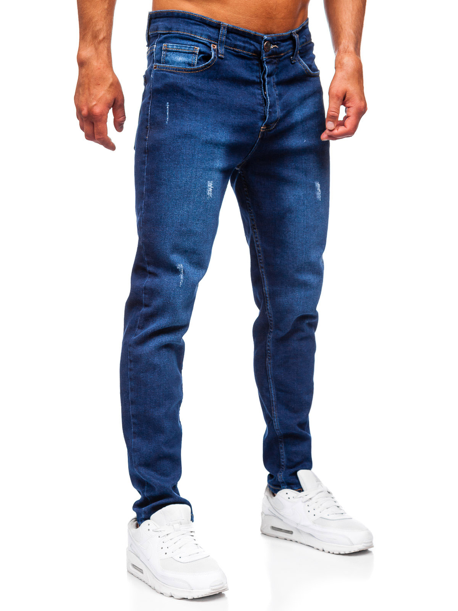 Mornarskoplave muške slim fit jeans hlače Bolf 6516 tipične su traperice kroja koji prianja uz figuru. Dosta su tamne tamnoplave nijanse trapera. Na nogama postoje manje ogrebotine i suptilna sjenka. Traperice su izrađene od 98% pamuka i 2% likre, što znači da su fleksibilne. Kopčaju se gumbima, imaju dva džepa sa strane i dva straga. Nosite ih uz osnovne majice kratkih rukava ili trenirke za stvaranje opuštene, ležerne, svakodnevne kombinacije. Također ih možete nositi uz polo ili košulju s ovratnikom i stvoriti elegantan casual stil, savršen za rad u uredu ili za poluformalne sastanke. Ne zaboravite upotpuniti look modernim kožnim remenom i cipelama u istoj boji kao i remen.