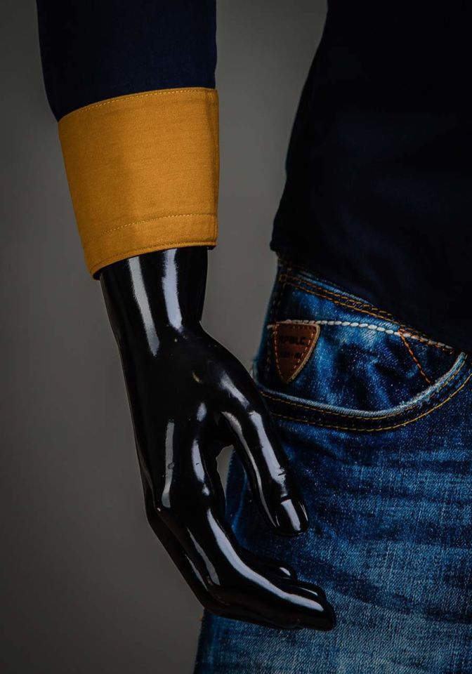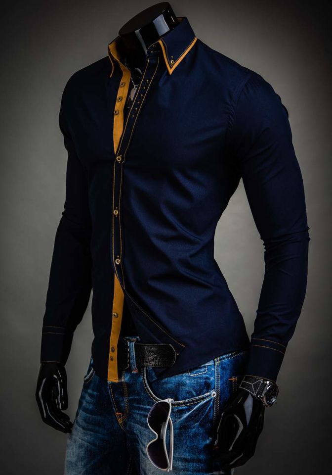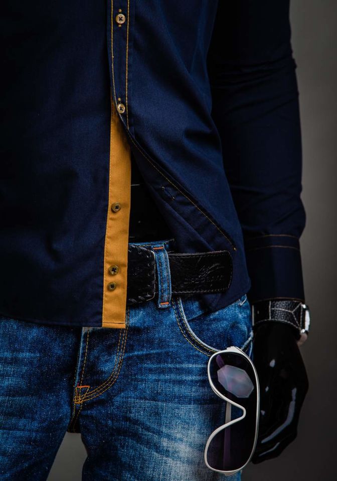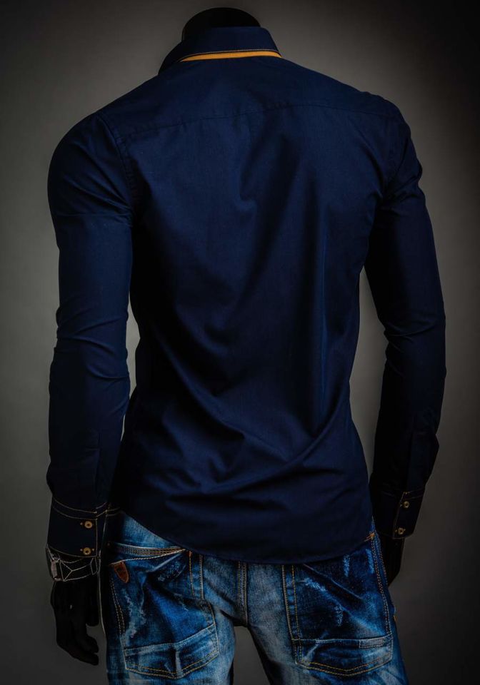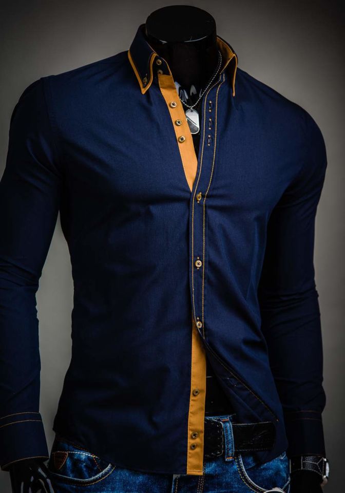 Stilske, muške slim fit košulje Bolf s dvostrukim ovratnikom tipa button down. Imaju kontrastne umetke. Mornarsko plava muška košulja je pripijena i savršeno će pristajati uz kombinacije sa sakoom, chinos hlačama ili kožnom jaknom. Savršen je za svakodnevnu upotrebu i za posebne prilike.