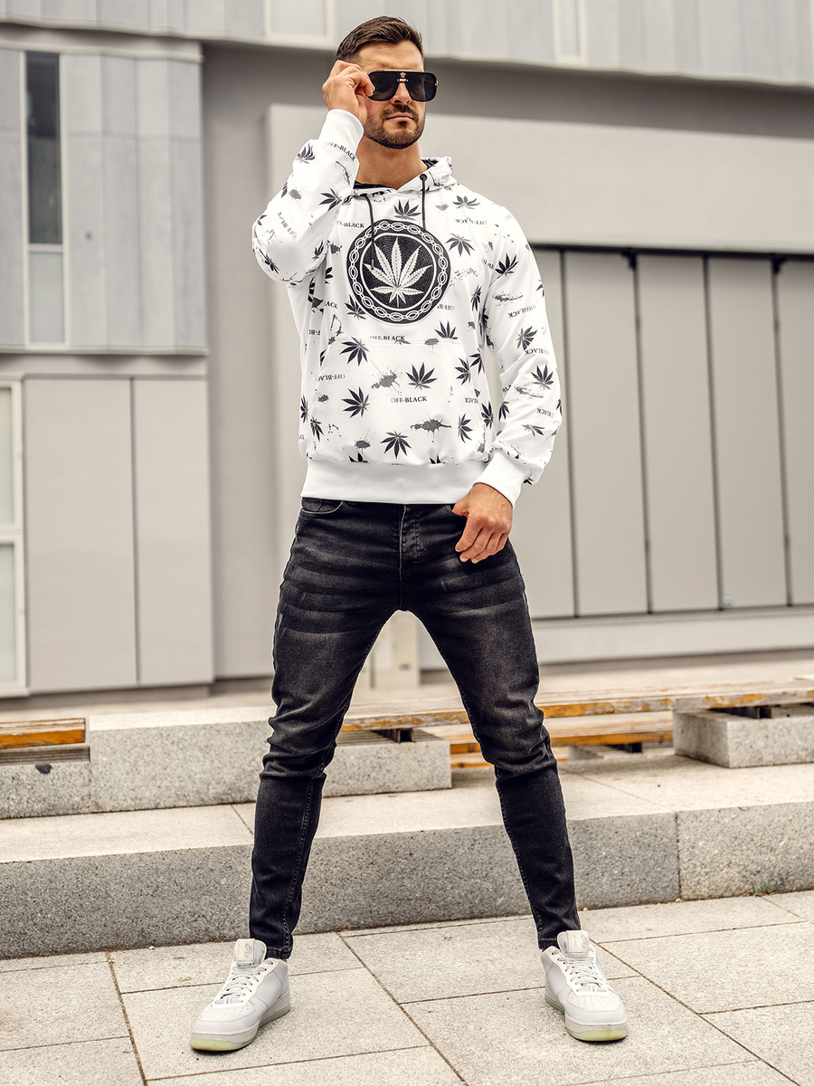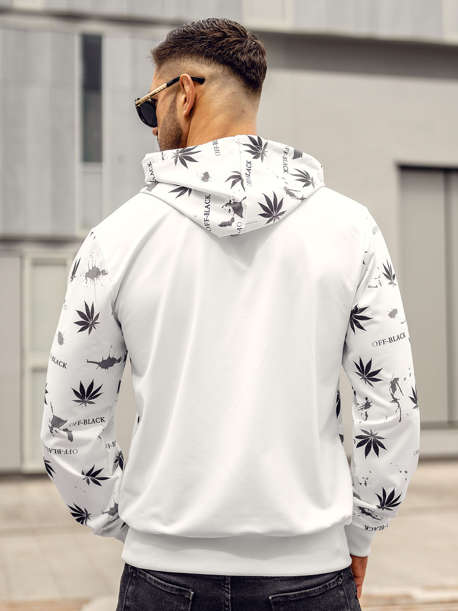 Muška bijela dukserica s kapuljačom s printom Bolf HM628A odlična je baza za jesenske ili proljetne odjeće. Praktičnost daju dvoslojna kapuljača na vezice i klokan džep. Ovaj model odlikuje se zanimljivim, originalnim printevima s prednje strane, zahvaljujući kojima sweatshirt postaje izražajan i jedinstven karakter. Rukavi i donji dio trenirke završeni su porubom, što čini da trenirka savršeno pristaje uz tijelo. Proizvod je izrađen od ugodnog na dodir i izdržljivog materijala. Modne boje će dodati karakter mnogim ležernim i sportskim stilizacijama. Trenerka će odlično pristajati uz traperice ili cargo hlače. Kombinirajte ga s kožnom ili prijelaznom jaknom!