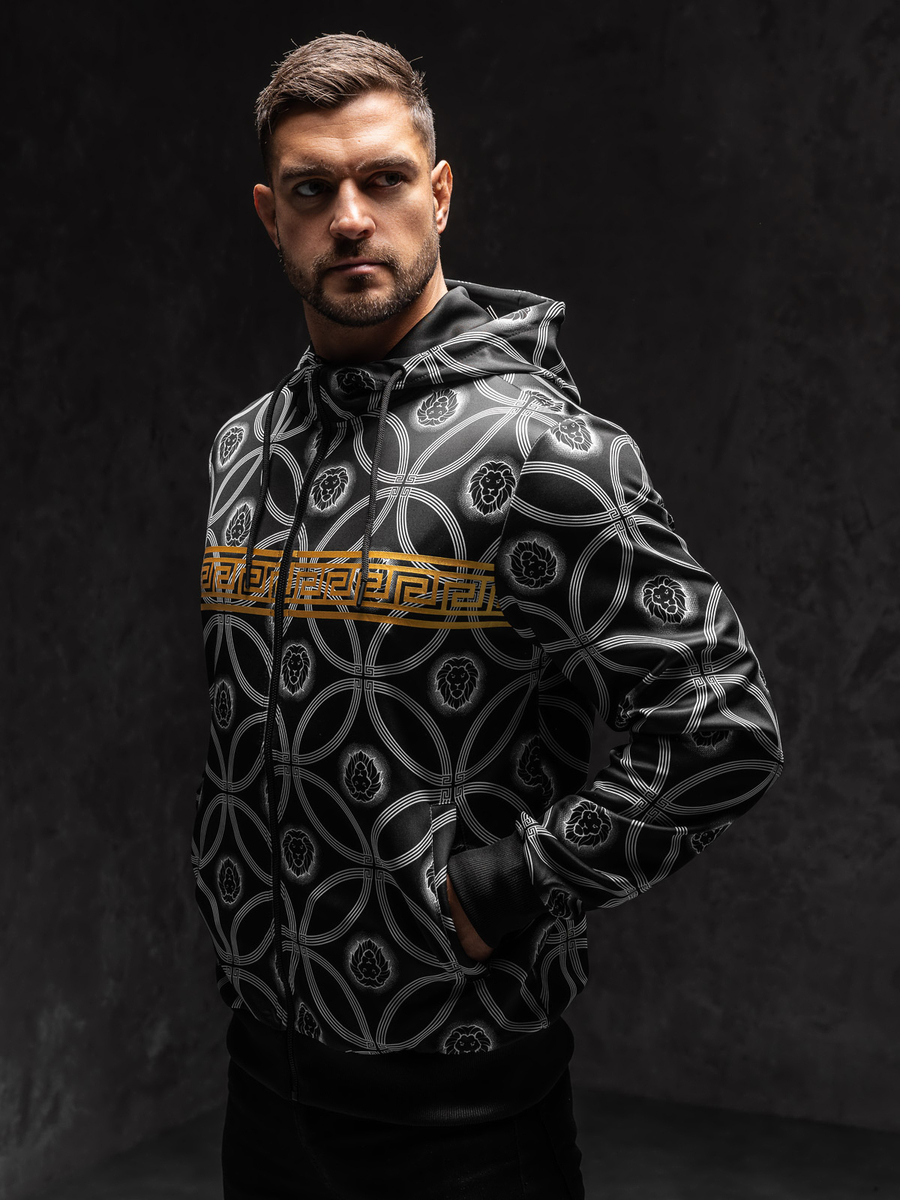 Bolf 27B8123A1 muška crna majica s punim patentnim zatvaračem izvanvremenski je klasik u svakodnevnom stilu. Sweatshirt klasičnog kroja, s podesivom kapuljačom, savršen za ljubitelje sportskog stila. Dizajnerski print daje jedinstven, moderan karakter. Donji dio i rukavi trenirke obrađeni su remenom koji pruža toplinu i zaštitu od vjetra u hladnijim danima. Majica ima dva bočna džepa bez kopčanja. Izrađena je od vrlo ugodnog materijala koji će osigurati udobnost i tijekom najzahtjevnijih treninga. Tražite sportsku odjeću? Kombinirajte trenirku s hlačama, majicom i vestom!