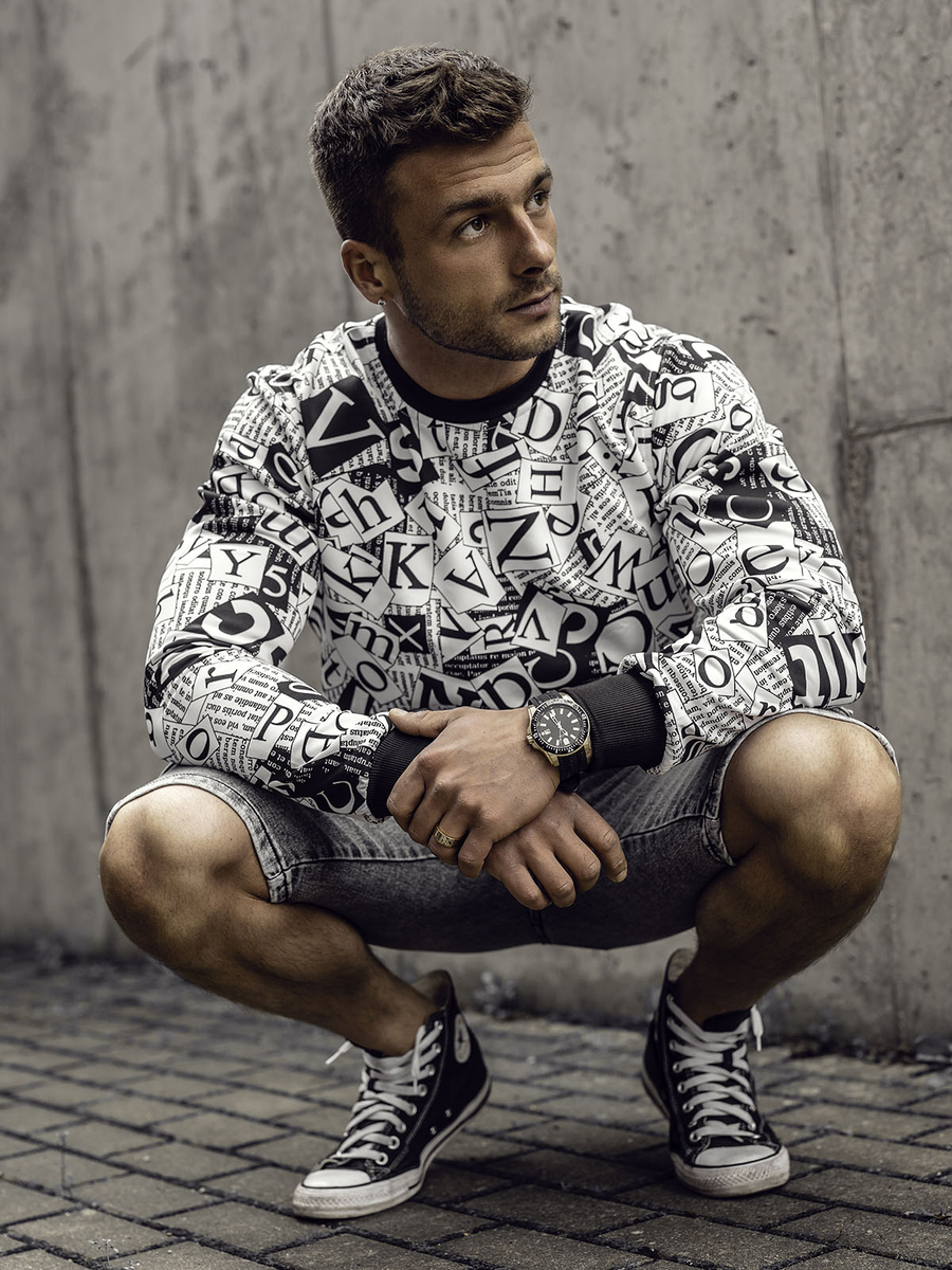 Crno-bijela muška dukserica Bolf 8B1135A bit će izvrsna opcija za muškarce koji vole spajati modu s udobnošću i komforom. Dukserica se navlači preko glave. Donji dio, dekolta i rukavi su završeni porubom, koji osigurava dobro pristajanje uz tijelo. Jeste mekana i ugodna na dodir. Ne sputava pokrete zahvaljujući opuštenom kroju. Bijelo crni dizajn privlači pažnju i omogućuje vam da se istaknete u masi. Dukserica sjajno će izgledati uz bomber jaknu, joggerice i sportu obuću.