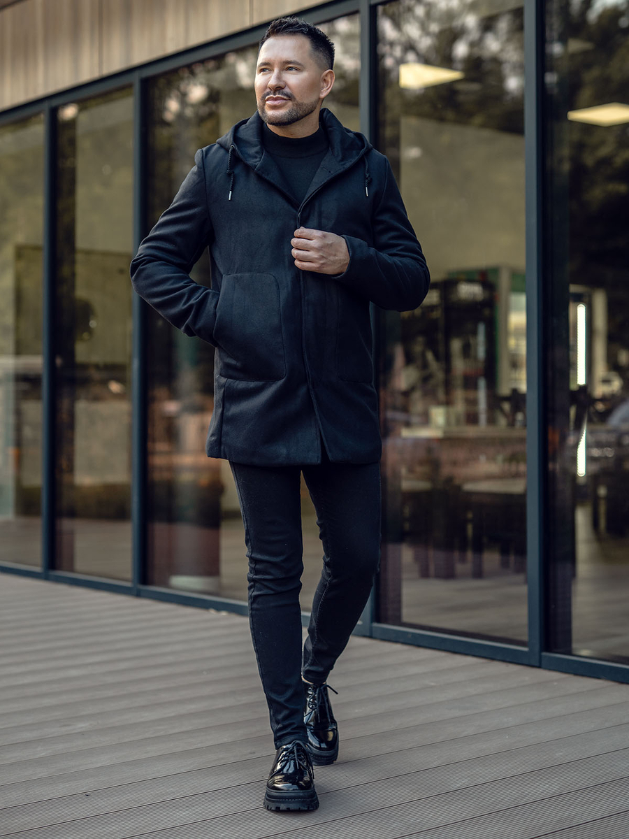Muški crni zimski kaput s kapuljačom Bolf 79B3A-197 univerzalni je kaput koji će se savršeno uklopiti u ormar elegantnog i modernog muškarca. Ovo je klasični kaput s gumbima. Kapuljača podesiva uzicu daje joj karakter. Ima dva vanjska džepa i jedan unutarnji džep. Kaput izgleda sjajno i zakopčan i otkopčan. Izrađen je od visokokvalitetne tkanine. Vrlo je originalan, ali ima i bezvremensku eleganciju. Savršeno za stiliziranje s chino hlačama, košuljom i sakoom, kao formalniju odjeću. Kombinirajte ga s trapericama i džemperom za svakodnevnu stilizaciju.