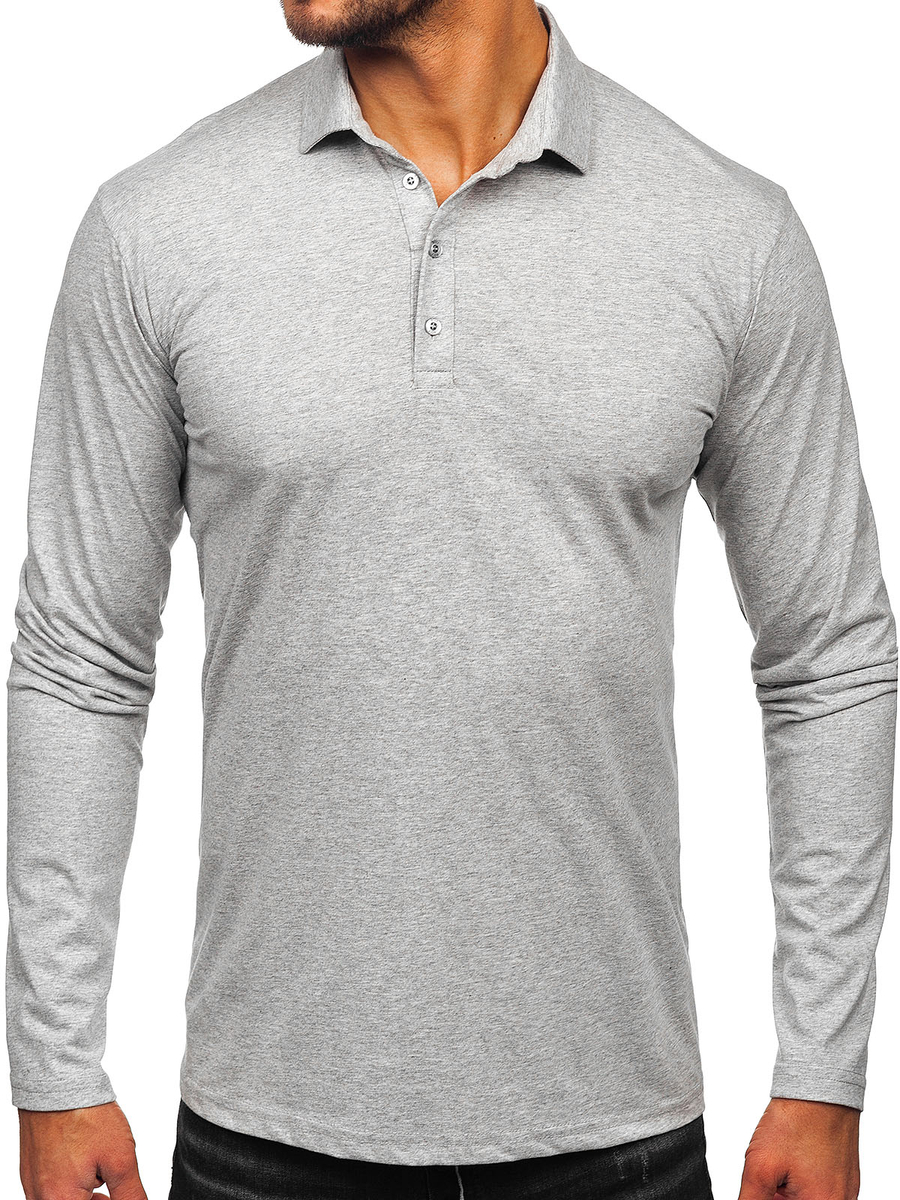 Mišljenja korisnika o Muška pamučna polo majica dugih rukava Sivo Bolf 5119