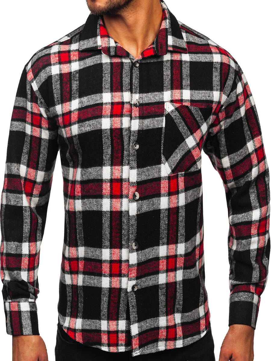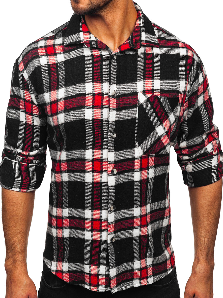 Mišljenja korisnika o Muška kockasta flanelska košulja dugih rukava Crvena Bolf 2025-3