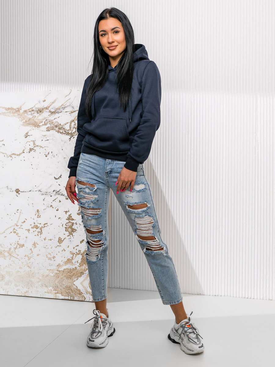 Dukserica ženska tamnoplava Bolf W02A1 odijevana preko glave Dukserica klasičnog kroja od mekane tkanine za trenirke ugodnog na dodir. Dukserica se može pronaći u mnogim originalnim i jedinstvenim bojama. Ima jednobojnu kapuljaču na vezice i praktičan prednji klokan džep. Donji dio trenirke i rukavi završeni su jakim, širokim šavovima. Dukserica se preporuča prvenstveno ženama koje vole minimalizam i sportsku udobnost u modi. Vrlo je dobro sašivena i udobna. Definitivno je must have u modernoj ženskoj garderobi. Jednostavan, klasičan kroj u zanimljivim bojama čini ovaj model dukserice savršenom kulminacijom mnogih svakodnevnih, uličnih i sportskih stilizacija. Glatka ženska dukserica s kapuljačom i velikim džepom prijedlog je koji vrijedi imati u svom ormaru ne samo u jednoj, već čak i u nekoliko boja. Dukserica će raditi u mnogim okolnostima u bilo koje doba godine i za gotovo svaku opuštenu i ležernu stilizaciju.