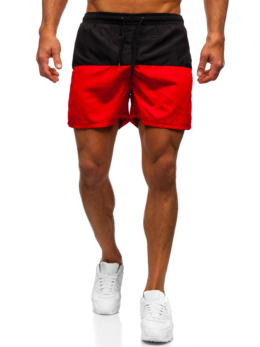 Crno-crvene muške kratke kupaće hlače Bolf HM058A najmoderniji su prijedlog za ljeto! Kratke hlače dostupne su u jedinstvenim bojama koje će učiniti da vaš stil nikad ne bude dosadan! Kratke hlačice su podesive u struku s jakim šavom i vezicom, zahvaljujući čemu savršeno pristaju uz tijelo. Unutra imaju ušivene mrežaste hlačice. Dva džepa sprijeda i jedan straga, zakopčani čičakom trakom, daju im praktičan karakter. Sportski stil hlačica za kupanje savršen je za odmor na moru, jezeru ili samo vrući dan. U kombinaciji s tank topom kreirat ćete ljetni outfit u kojem ćete se osjećati ugodno i moderno!
