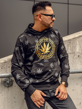 Crna muška dukserica s printom s kapuljačom Bolf HM336