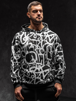 Crna i bijela muška klokan dukserica sa kapuljačom i printom Bolf 8B1152A1