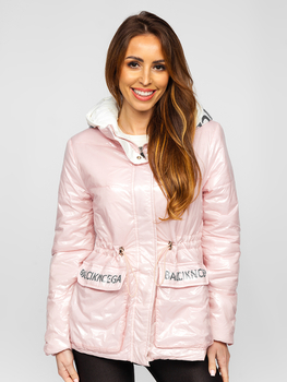 Ružičasta prošivena jakna ženska zimska s kapuljačom Bolf B9570
